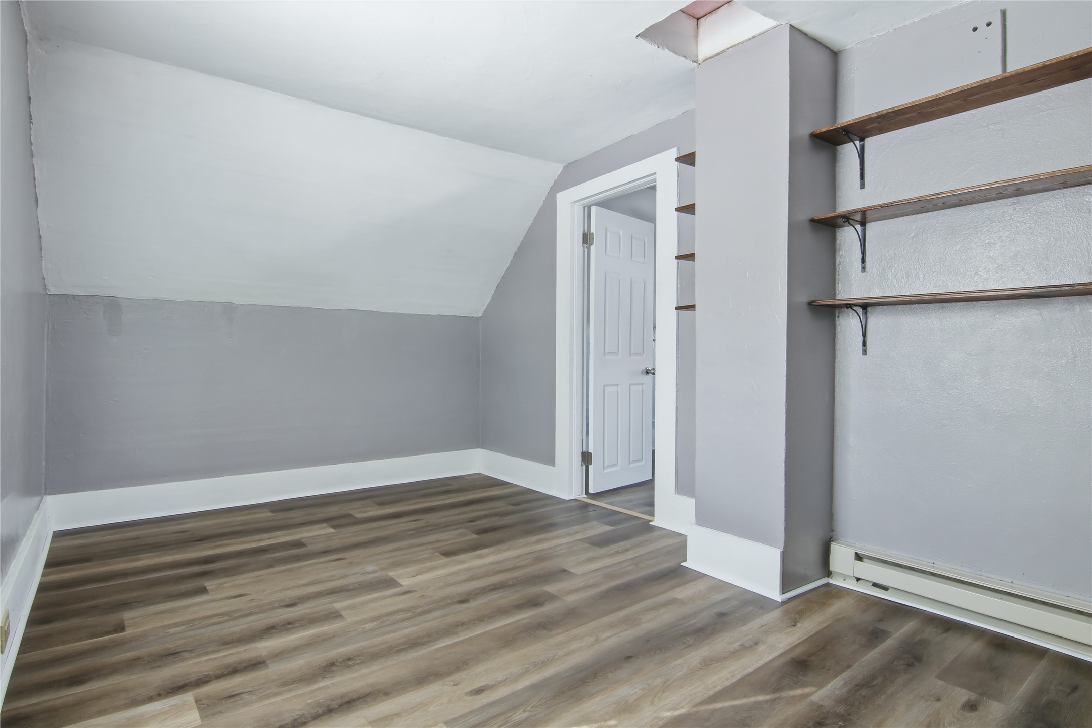 Upper level features one bedroom with landing and baseboard heat.