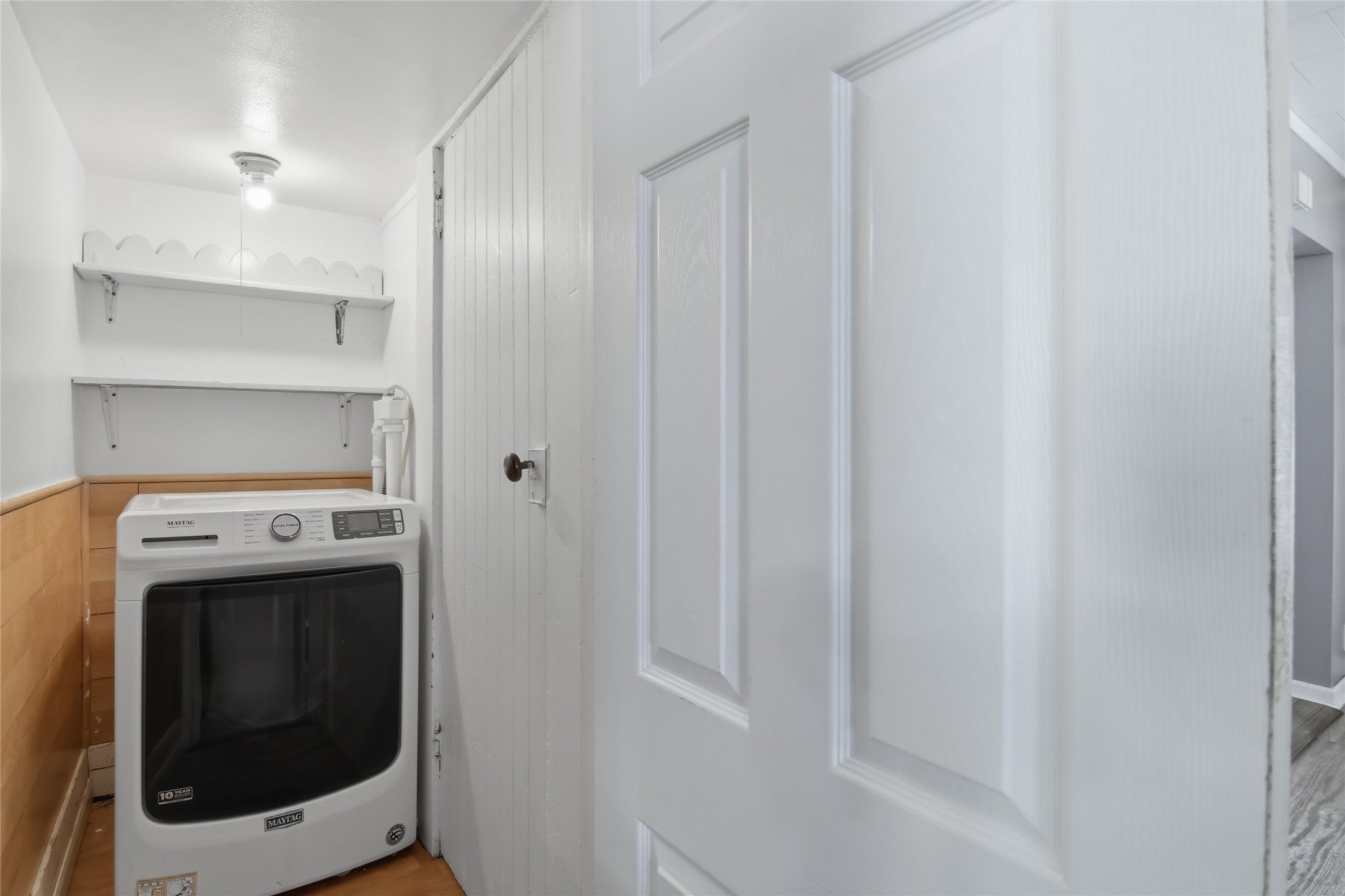Main floor bedroom and laundry for single-level living.
