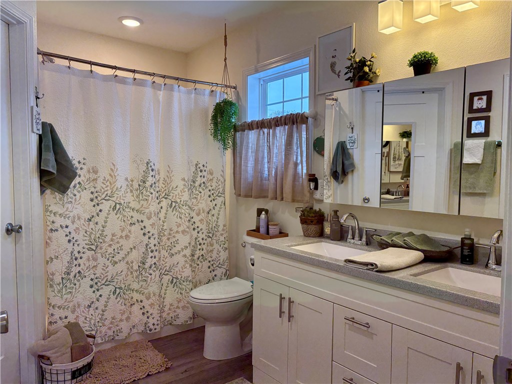 The primary suite offers a walk-in closet and private bath with a walk-in shower.