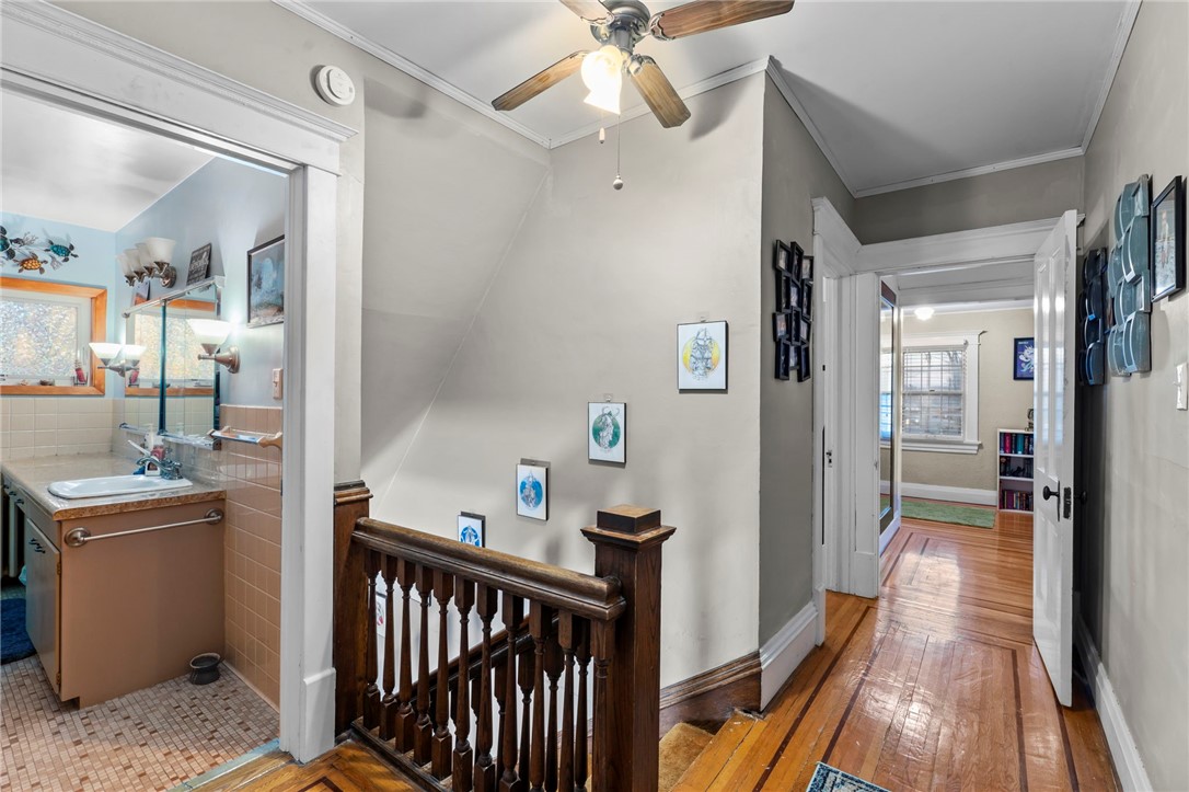 This spacious property features beautiful hardwood floors, original woodwork, and a cozy gas fireplace in the living room.
