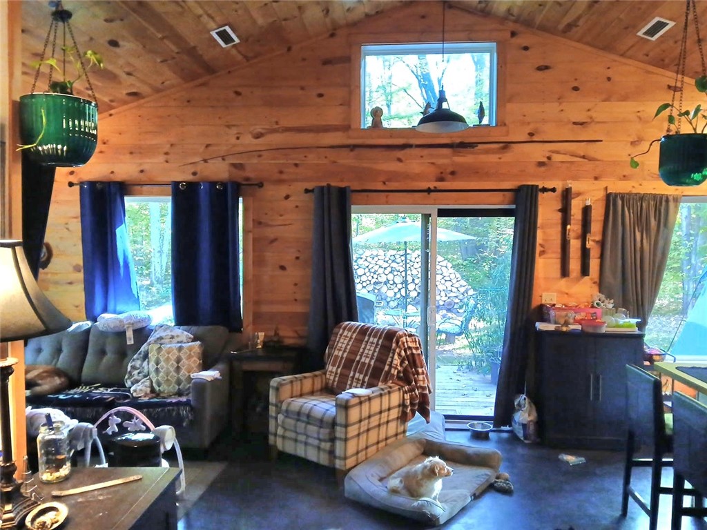 Hayward – One acre, completely wooded property with cozy country home in great condition featuring low maintenance LP smart siding & metal roof.