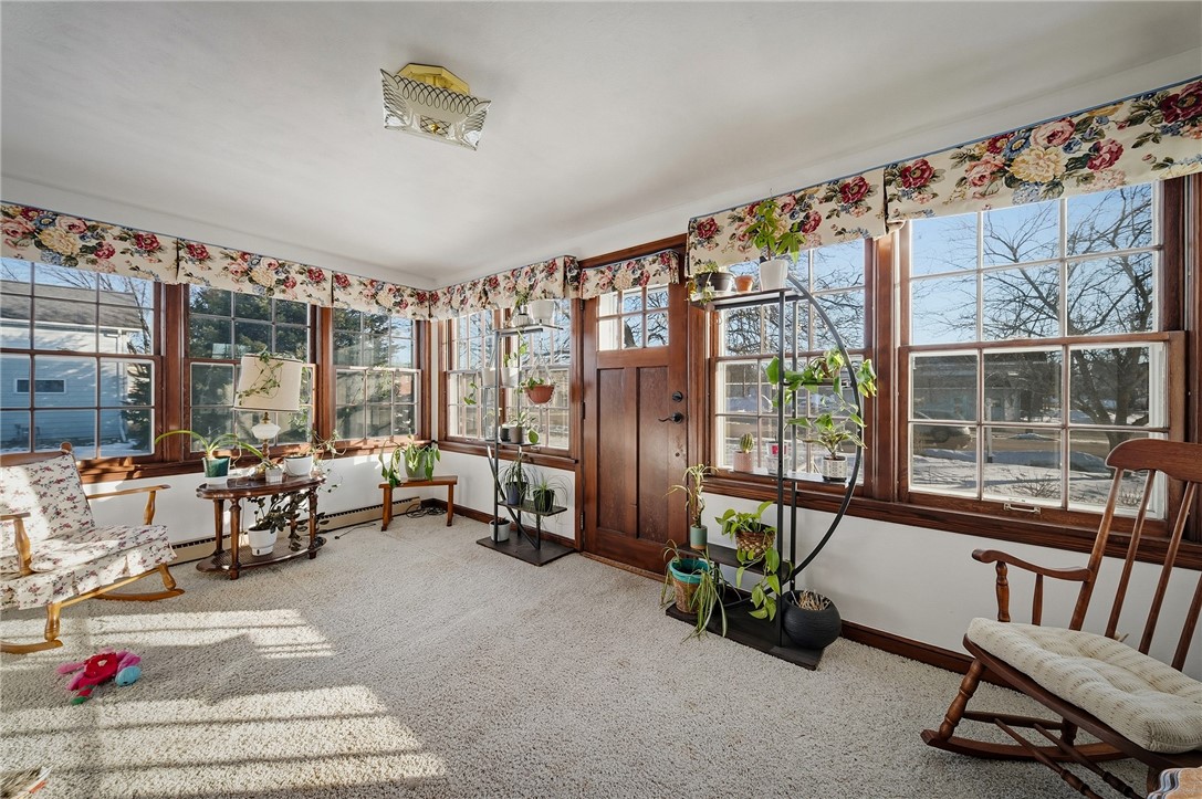 A four-season sunroom provides year-round enjoyment with expansive windows overlooking the village shops.