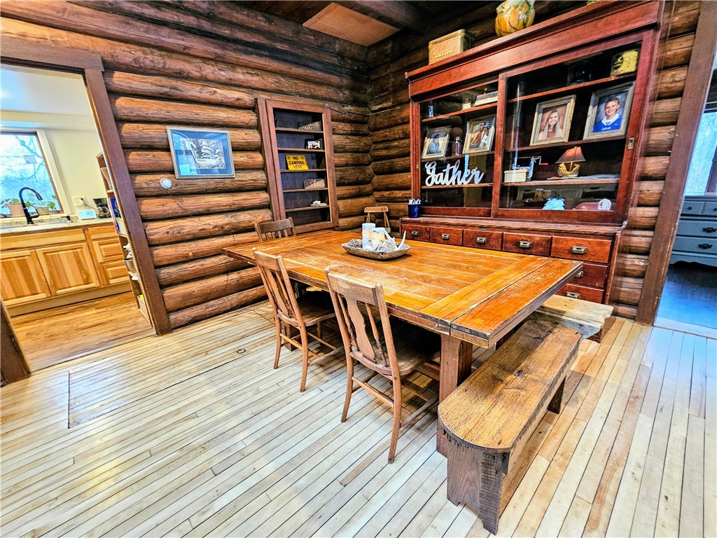 This enchanting traditional log cabin offers a unique blend of rustic elegance and modern comfort.