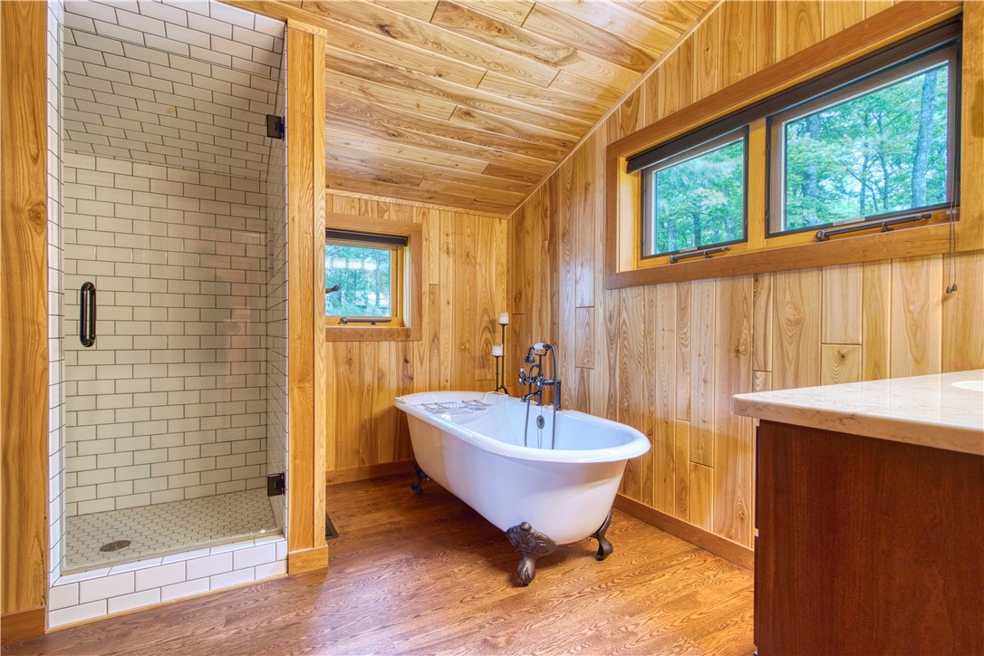 Enjoy low elevation to the water, your own boat house, and panoramic views of this 5,000+ acre Class A musky lake.