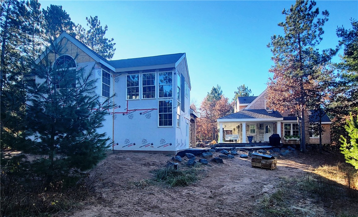 The garage is progressing with the final installation of cedar shake siding to complement the home’s exterior detail.