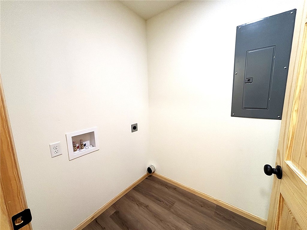 Carpet in the living room and bedrooms; vinyl plank flooring in the kitchen, dining area, bathroom and laundry.