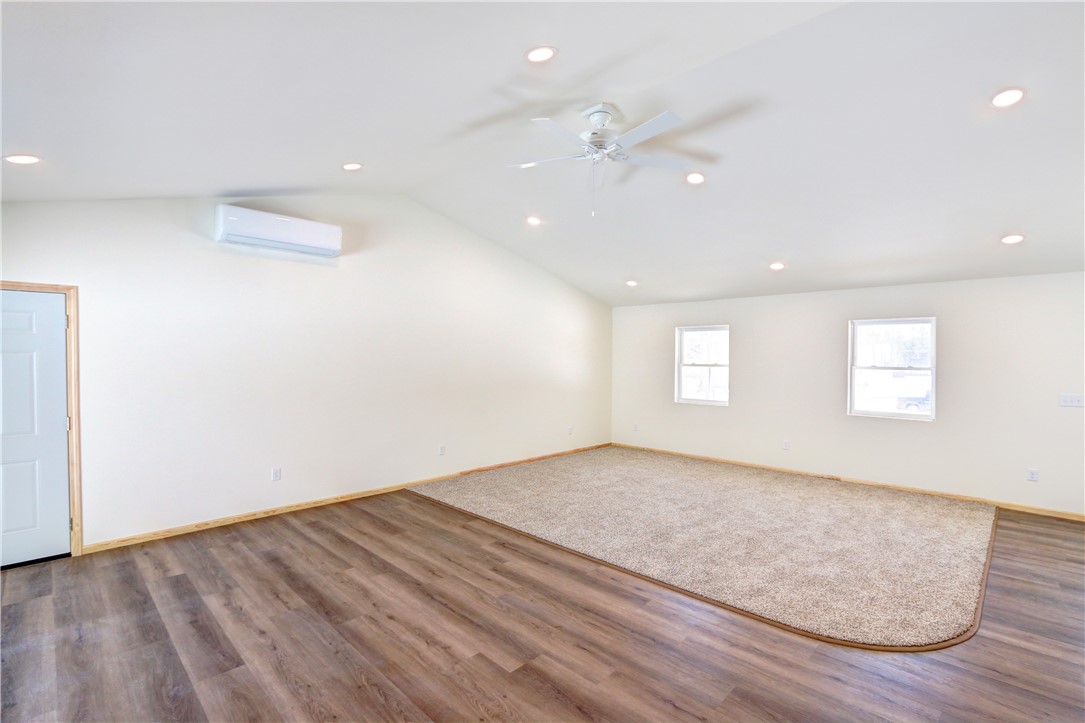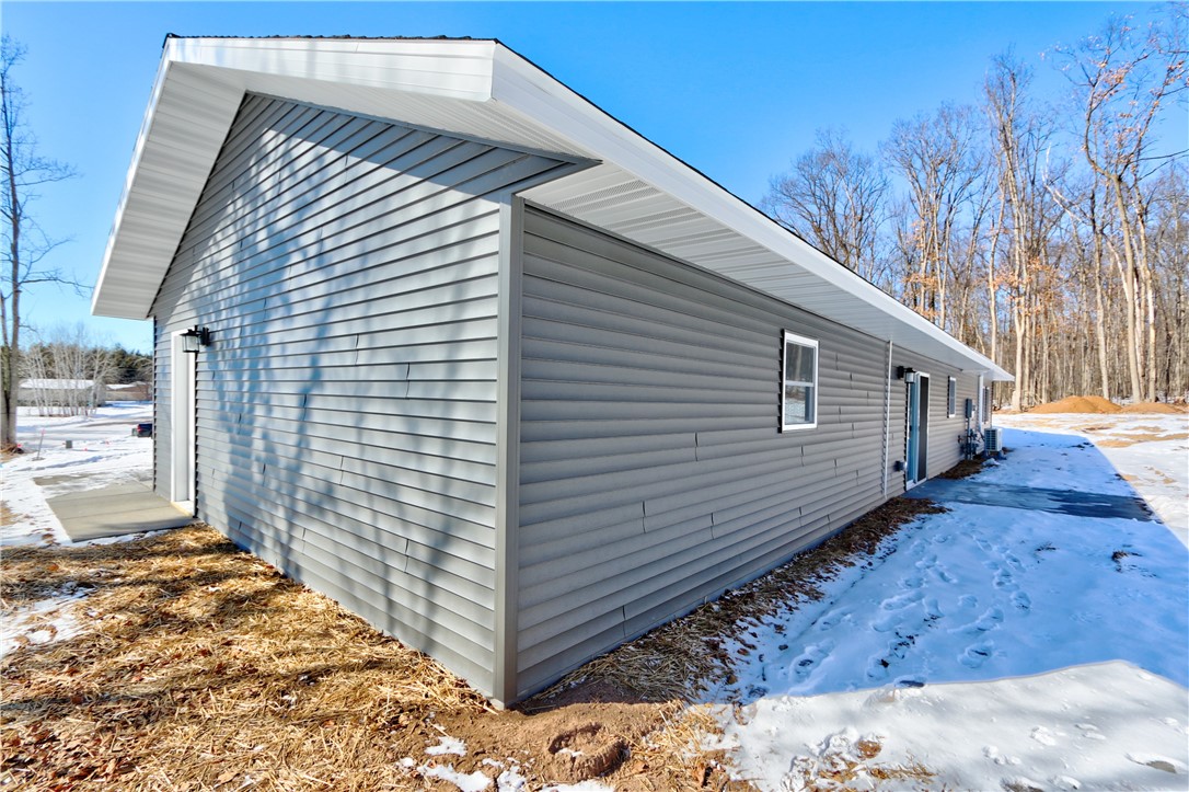 Brand new 3 bedroom home in the city of Spooner! This comfortable home is all on one level and features an attached garage, vaulted ceilings in the great room, in-floor heating and mini-split A/C.
