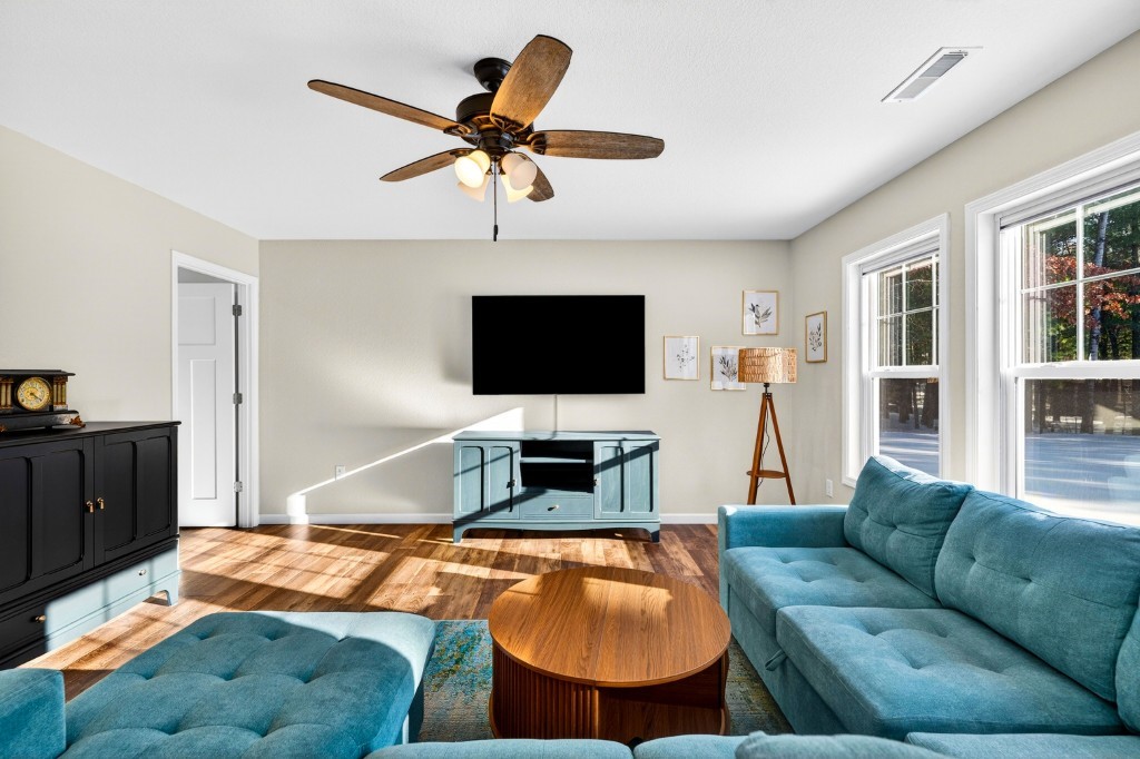 Durable LVP flooring runs throughout the home, complemented by central air conditioning and a bright, airy atmosphere ideal for everyday living and entertaining.