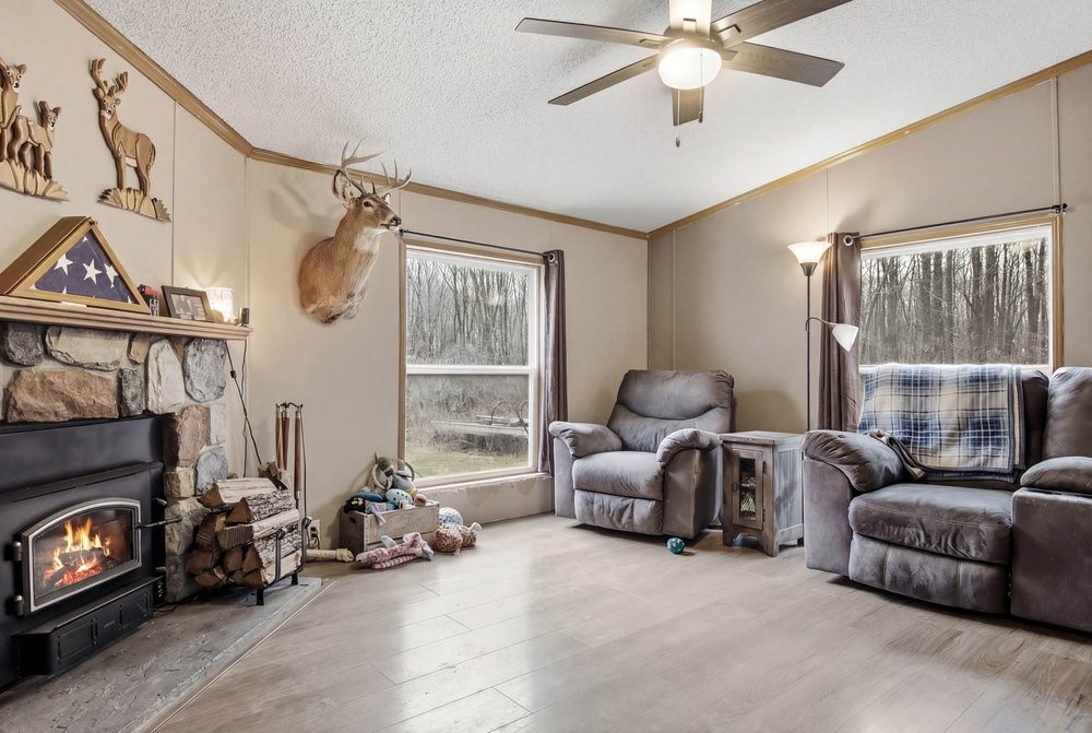 A 3-car detached garage is insulated and heated, and the impressive two-story outbuilding features a cement floor and loft—perfect for storing recreational toys, creating a workshop, or even setting up your own deer camp.