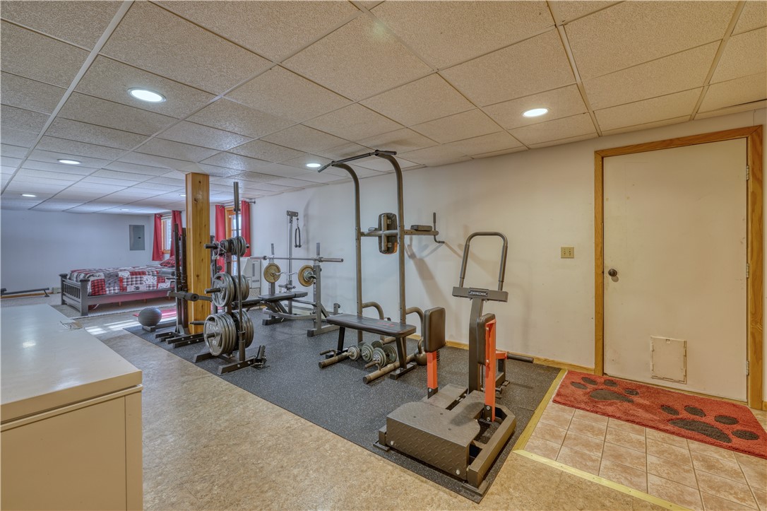It features two additional bedrooms, a third bathroom, laundry facilities, storage space, and a large rec room area.