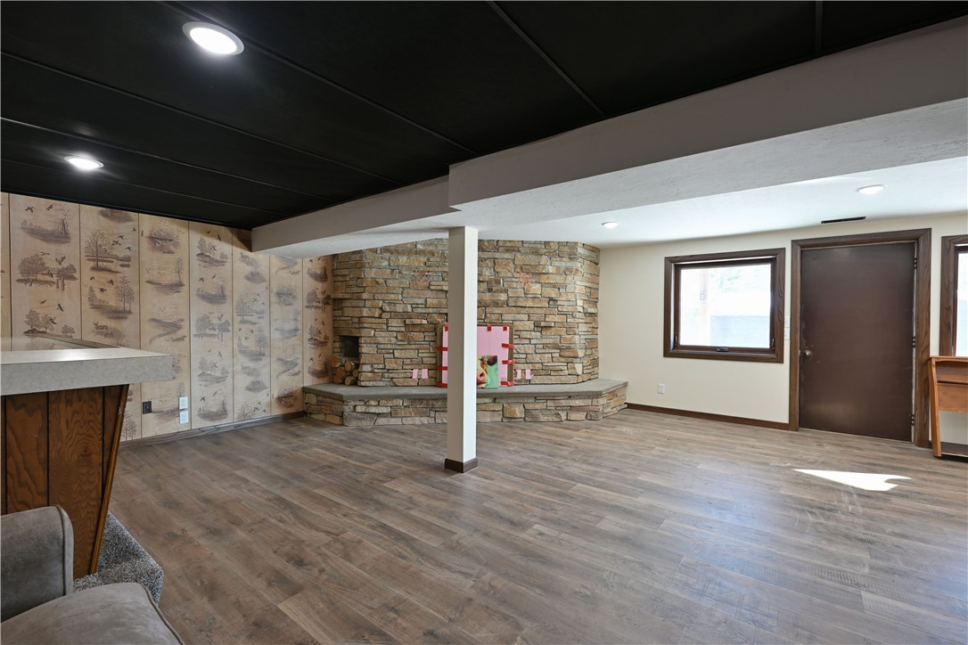 Stone fireplaces on both levels add warmth and character, while large bedrooms and main floor laundry enhance everyday convenience.