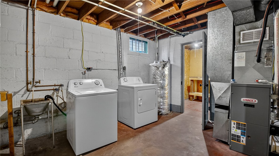 The unfinished lower level offers incredible potential to be transformed into additional living space or extra bedrooms with the addition of an egress window, allowing you to tailor the home to your needs and lifestyle.