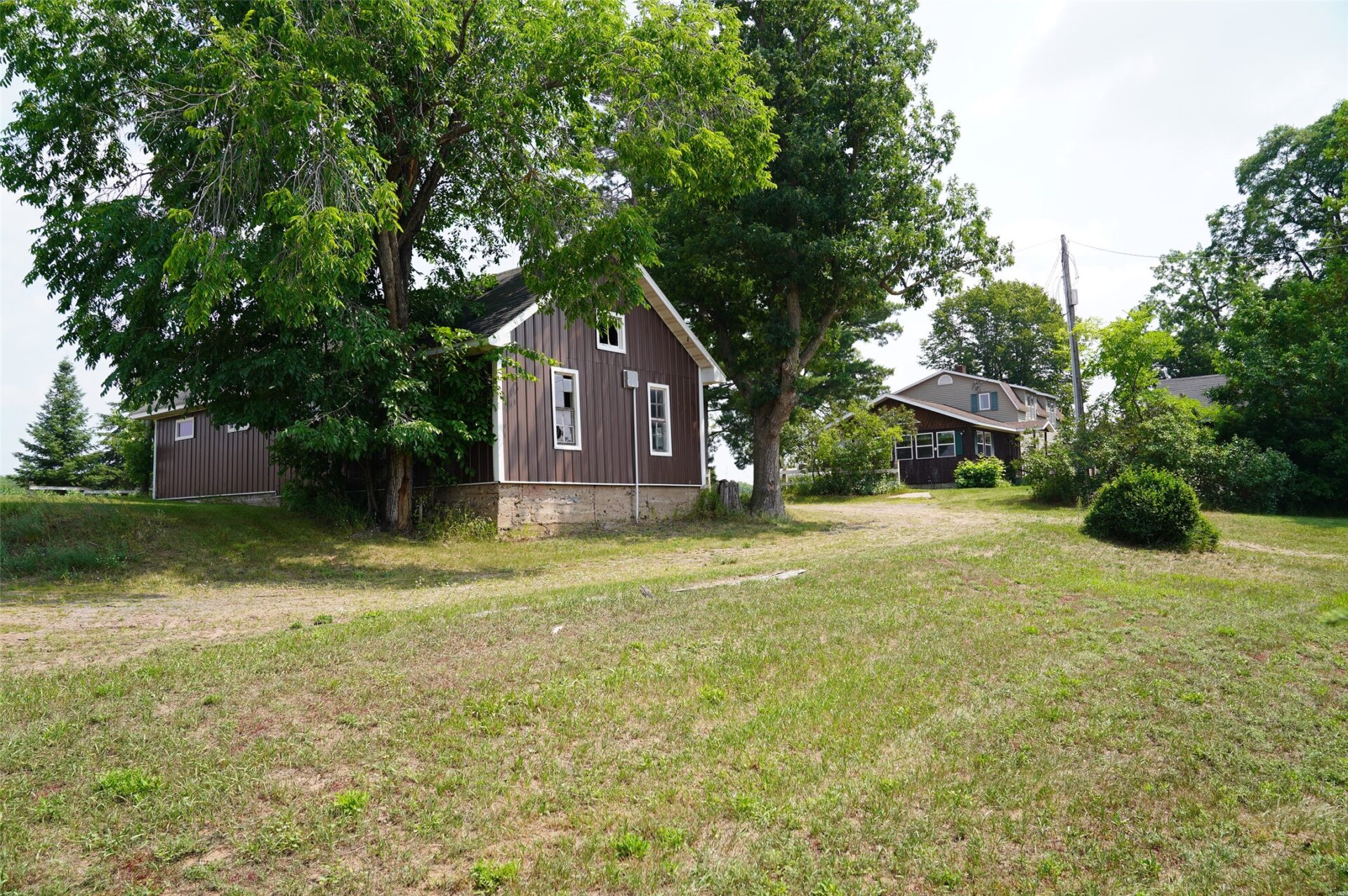 The home is accessed by a long driveway that creates separation from the township road, offering a more private setting while maintaining practical access.