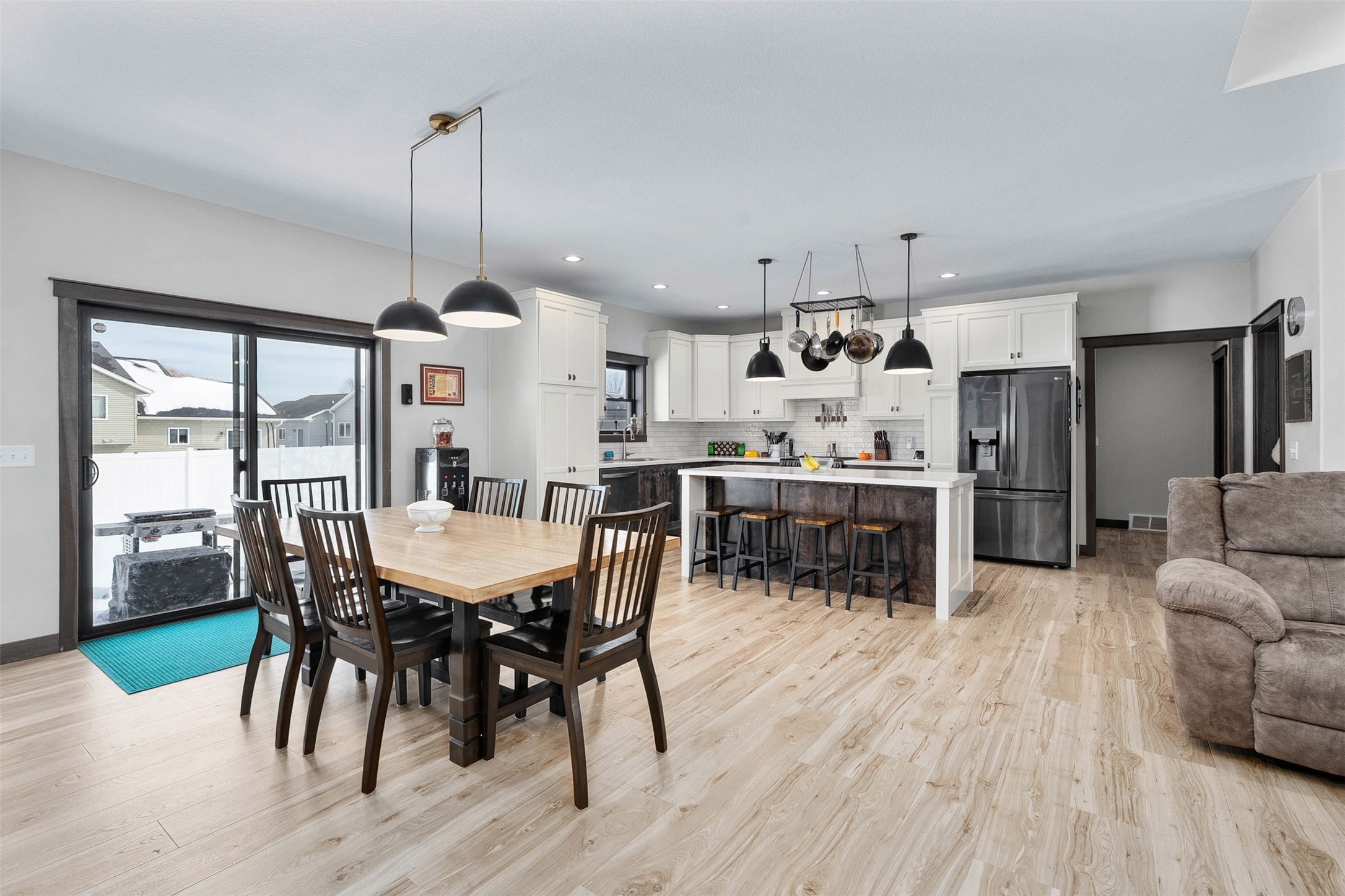 The open-concept main level features Redwing custom cabinetry and beautiful flooring, creating a warm yet sophisticated feel.