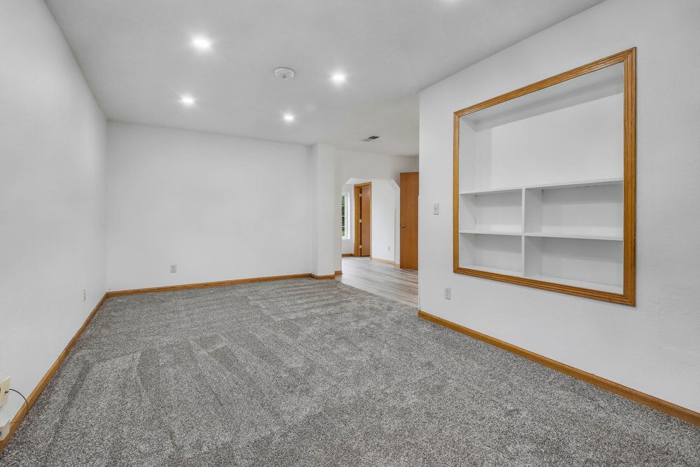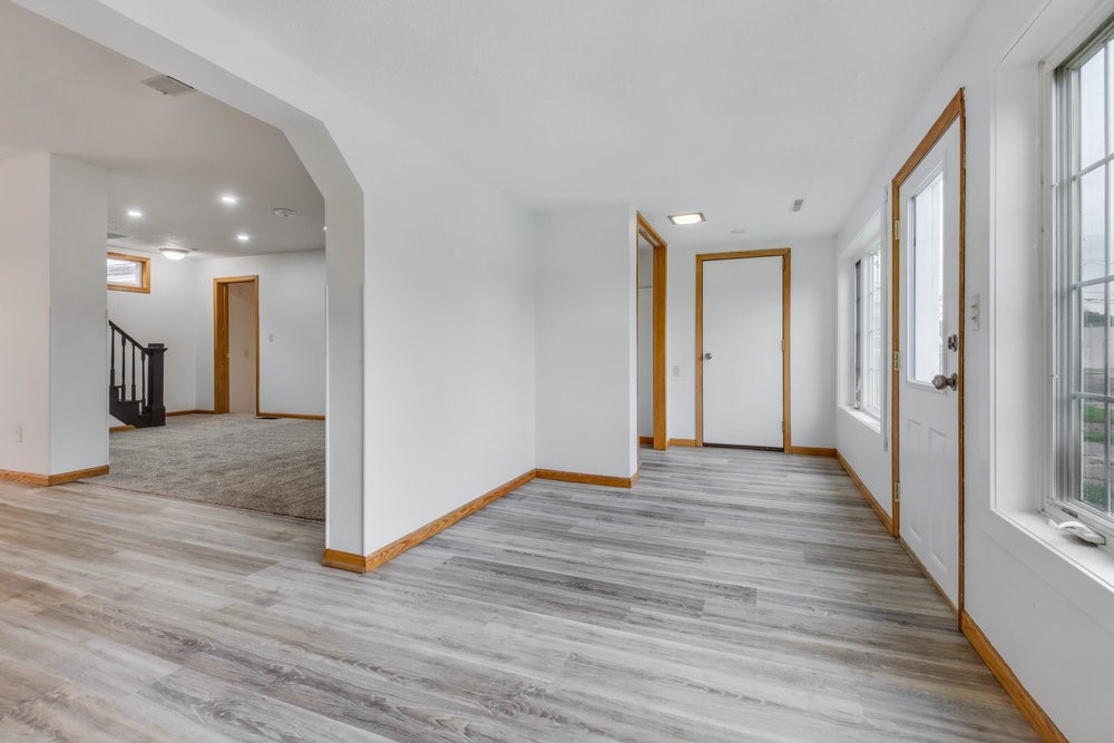 The flexible layout includes a sizable main floor bedroom, ideal for a master suite or office, plus three generous-sized bedrooms and a roomy full bathroom on the upper level.