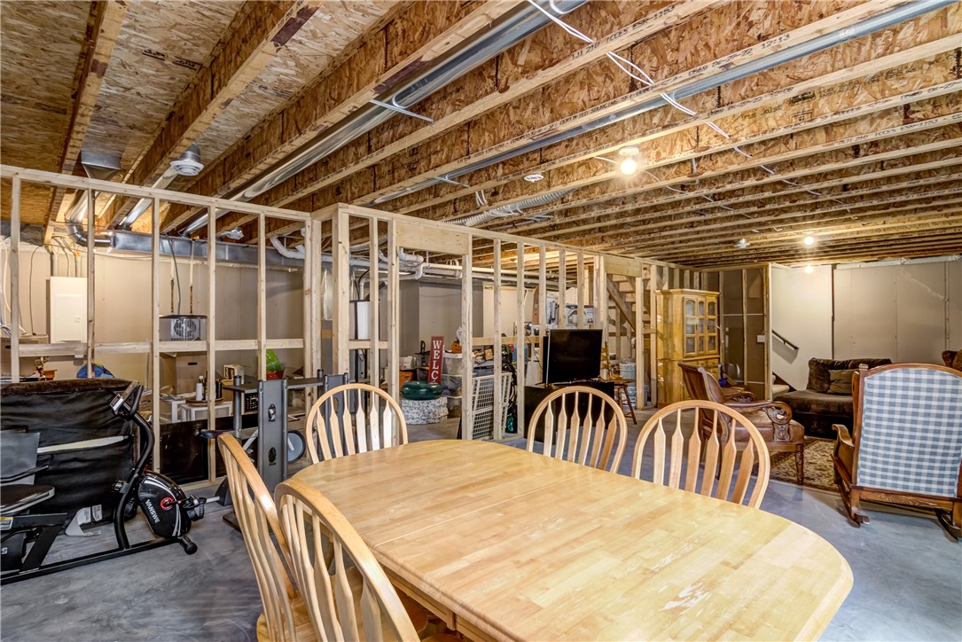 The unfinished lower level provides abundant storage and offers excellent potential for a future family room, third bedroom, and additional bathroom.