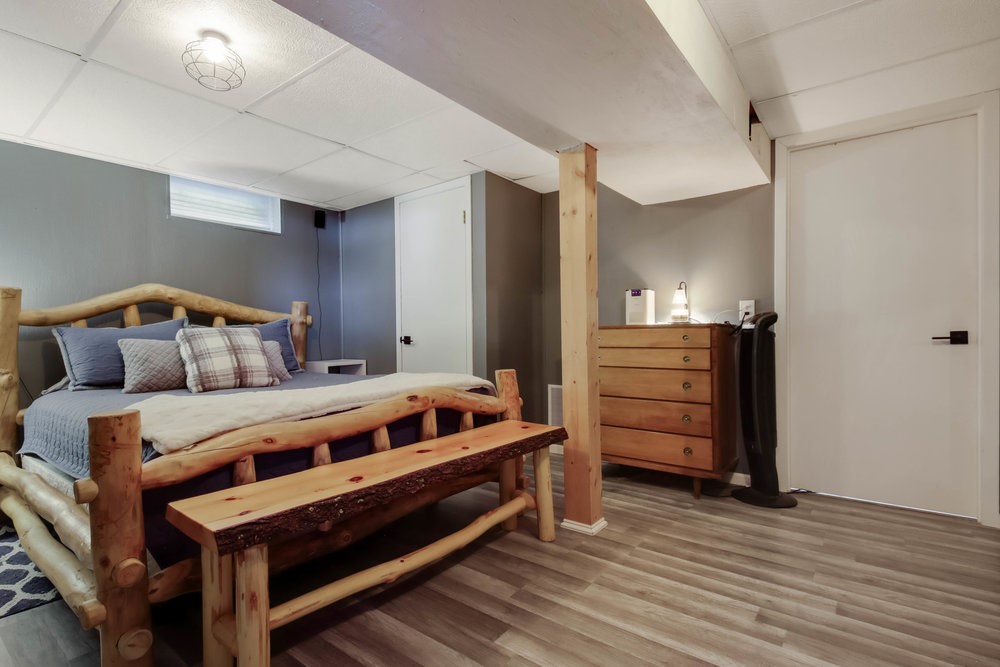 The lower level provides a spacious family room and a convenient half bath, giving an en-suite feel.