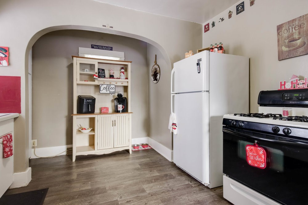 The large kitchen and dining areas provide room to gather and entertain, while the inviting living room anchors the home with classic charm.