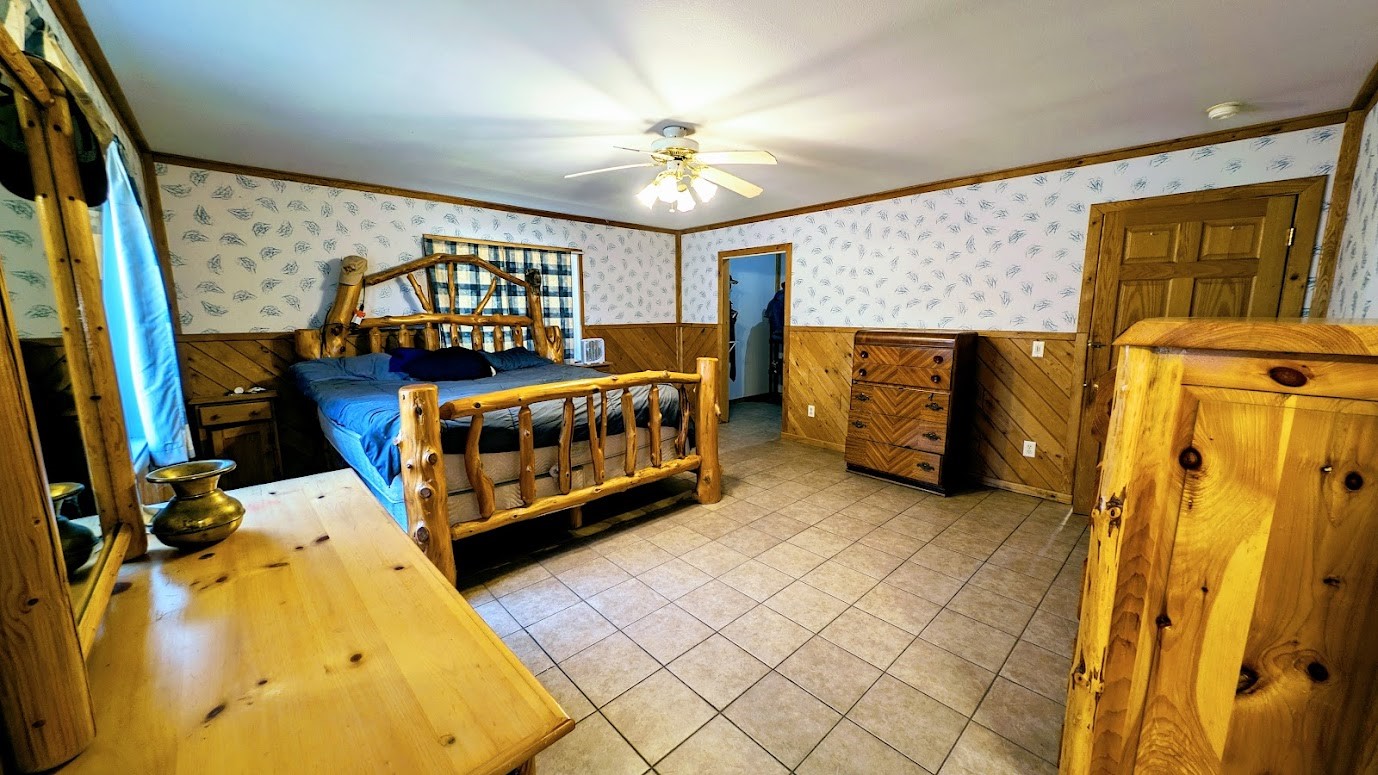 Inside, the home showcases a warm rustic design with tongue-&-groove oak walls, ceilings, & cabinetry.