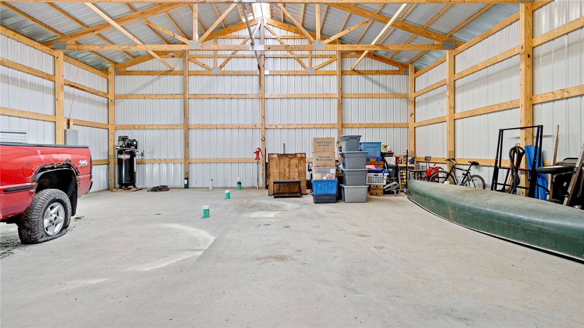 Outside you will be impressed by the next-to-new 36x32' pole shed sporting it's 17' and 10' doors and 200amp service, designed to accommodate an RV! Asphalt driveway, spacious 2-car detached garage, cute garden shed, 20x20 carport, perennial gardens, and space to enjoy! Book your tour today!