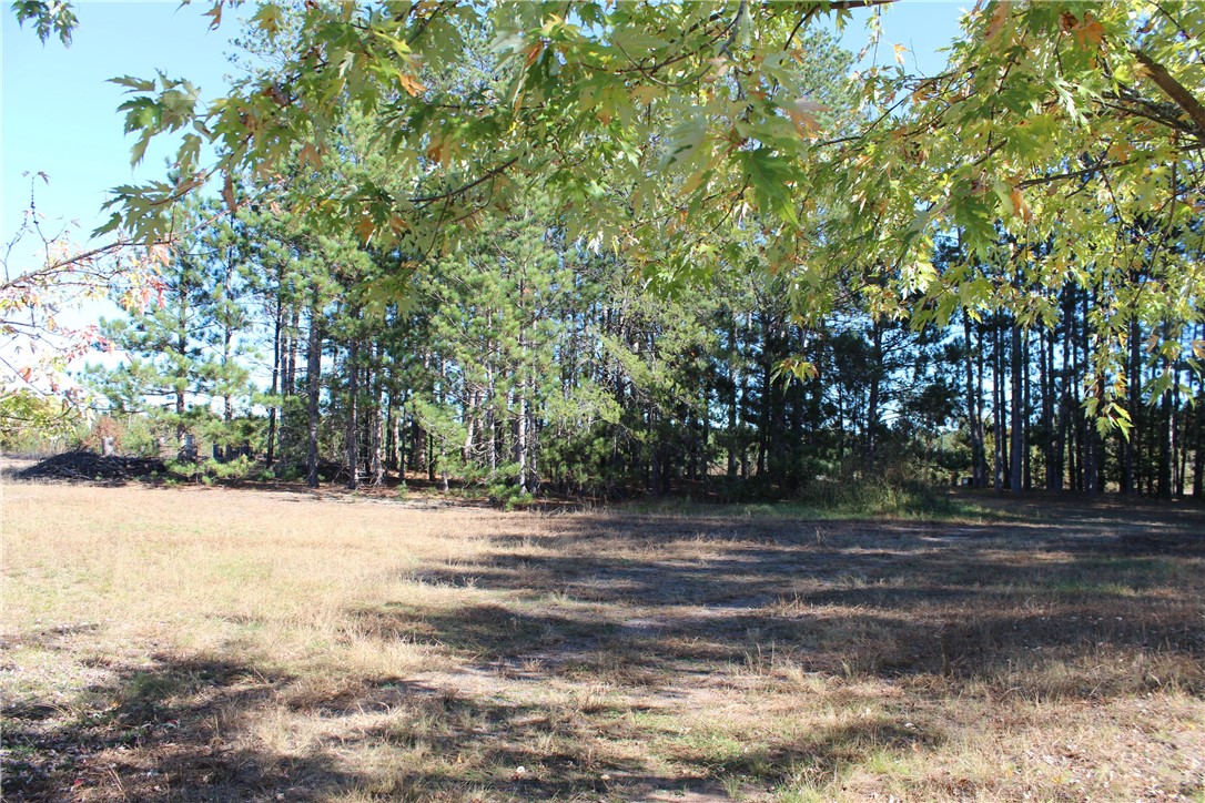 Nice pine plantation on the South side of the home that offers a large two-car garage and plenty of room for an additional shed.