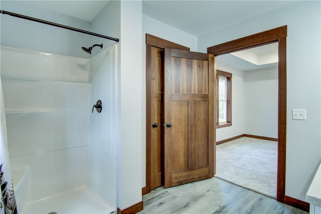 The master suite offers tray ceilings, dual sinks, a walk-in shower, and a walk-in closet.