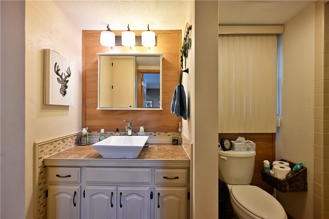 The upper level features three comfortable bedrooms, while the remodeled family room boasts a cozy wood-burning fireplace, perfect.