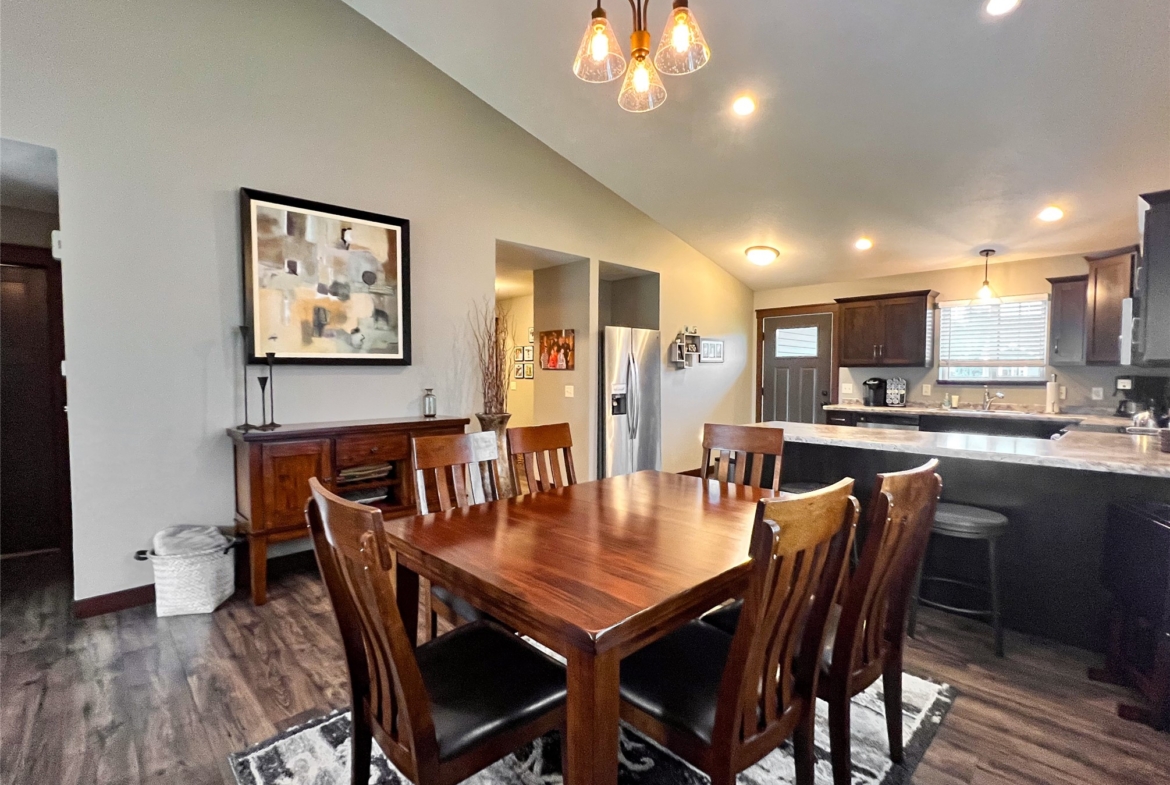 The seamless flow from the kitchen to the dining area and living room—complete with a walkout patio—makes entertaining effortless.