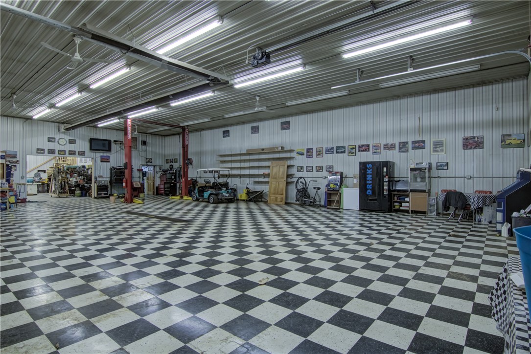 If you are searching for a spacious home on acreage with outbuildings, check this out! Includes an older barn, storage shed, large machine shed and a newer 40x100 finished pole shed complete with checkered tile garage flooring, workshop area, storage area and upper loft office with bathroom and laundry! Also included is large generator that can run the entire property if needed.
