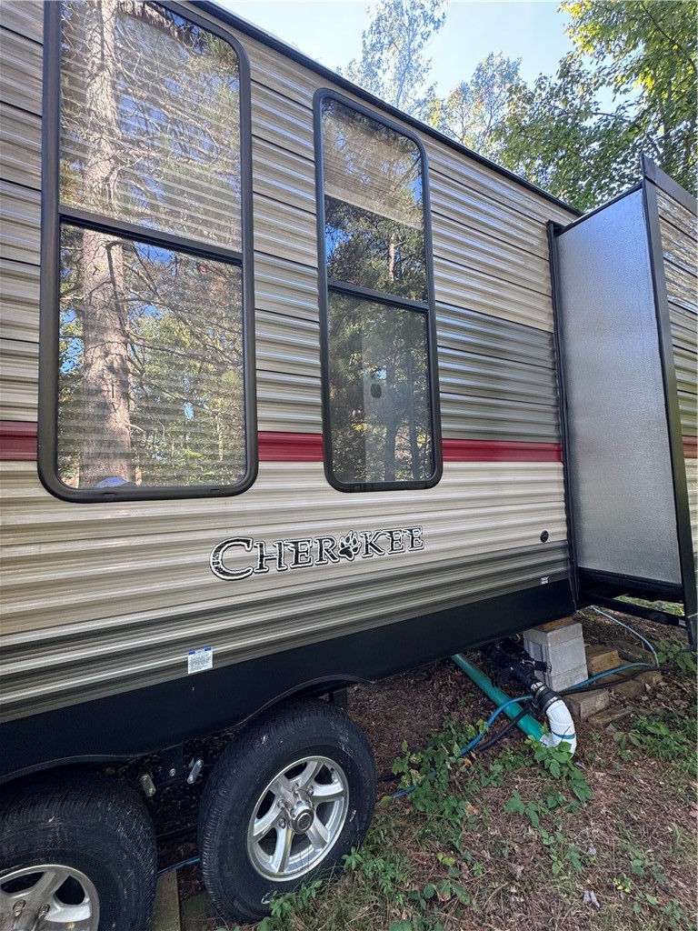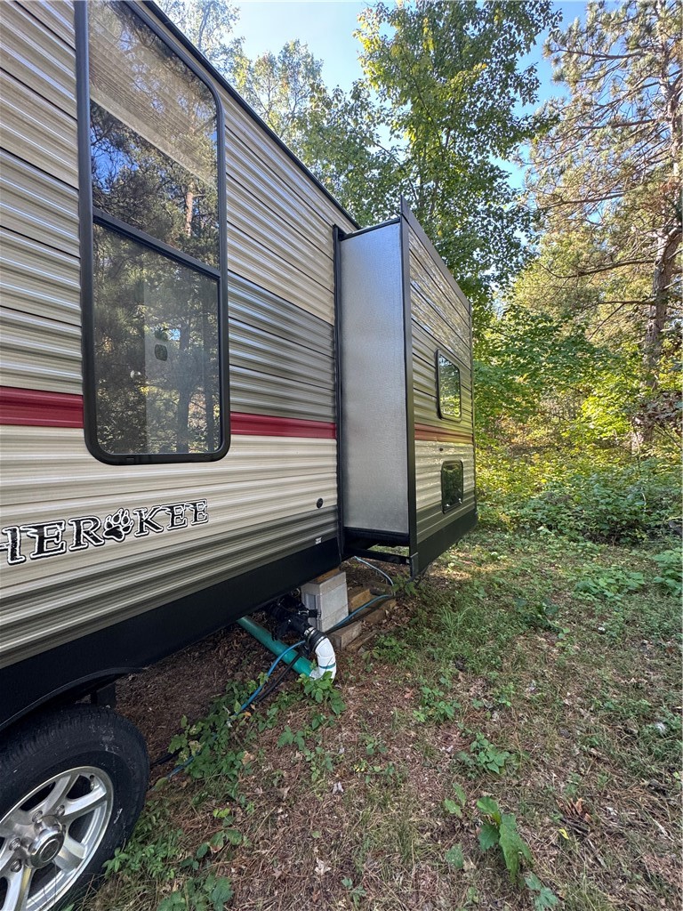 1.51 Acres of beautiful land of woods and quiet tranquility! This is the ULTIMATE CAMPING lot, completely ready with a 40′ Cherokee Destination Trailer with two slide outs, a 22′ Trex deck, a conventional septic system sized for a 2 bedroom home, a 10’x20′ fully insulated bunkhouse shed with its own 3/4 bath and kitchen sink – complexity finished and fitted interior! This one is move-in ready for all your 3 season fun in Voyager Village.