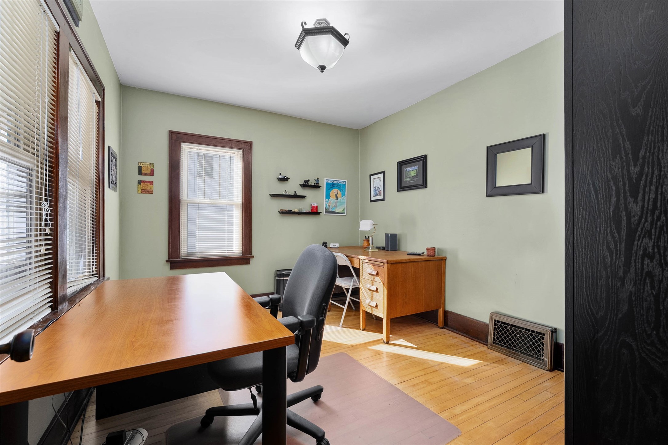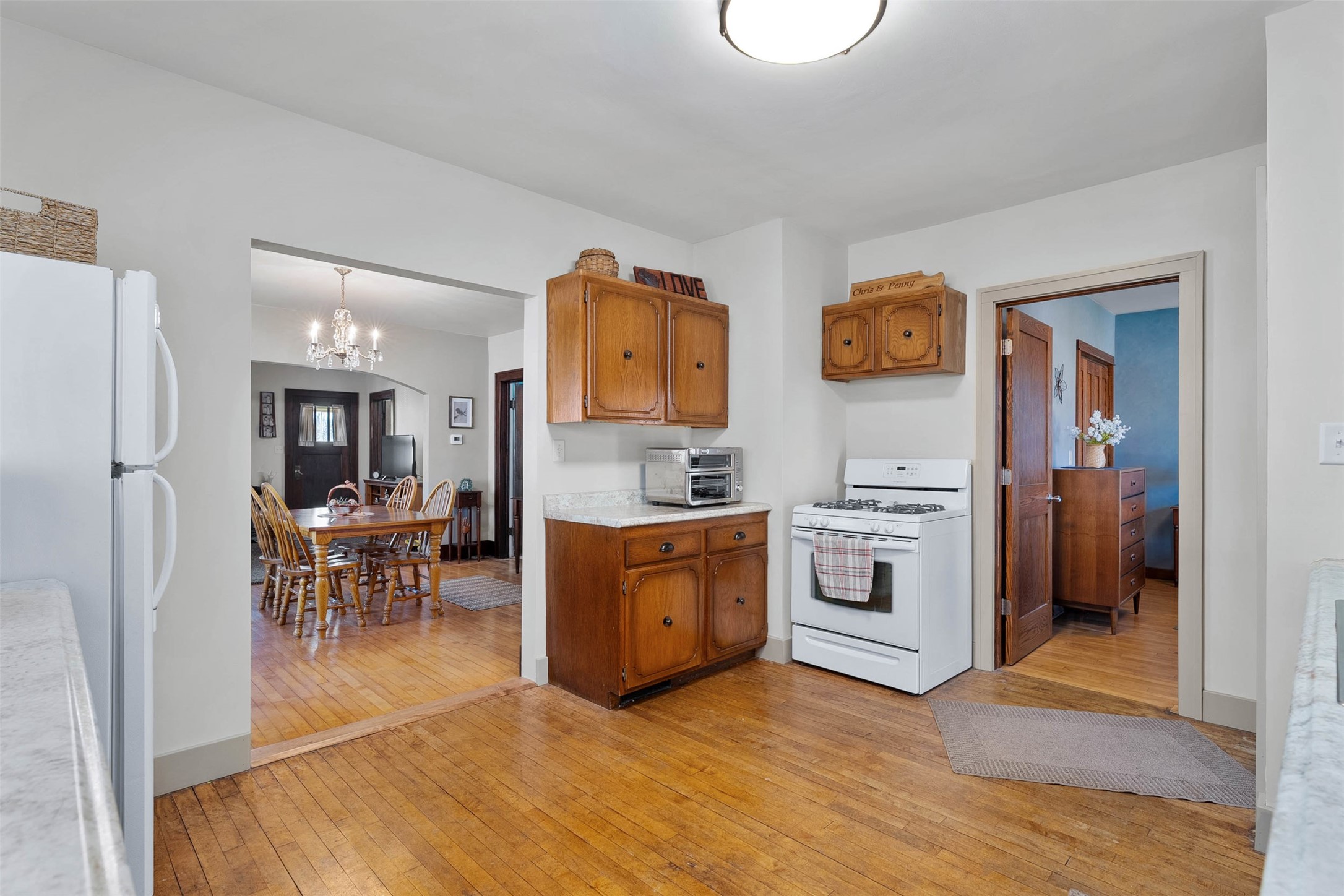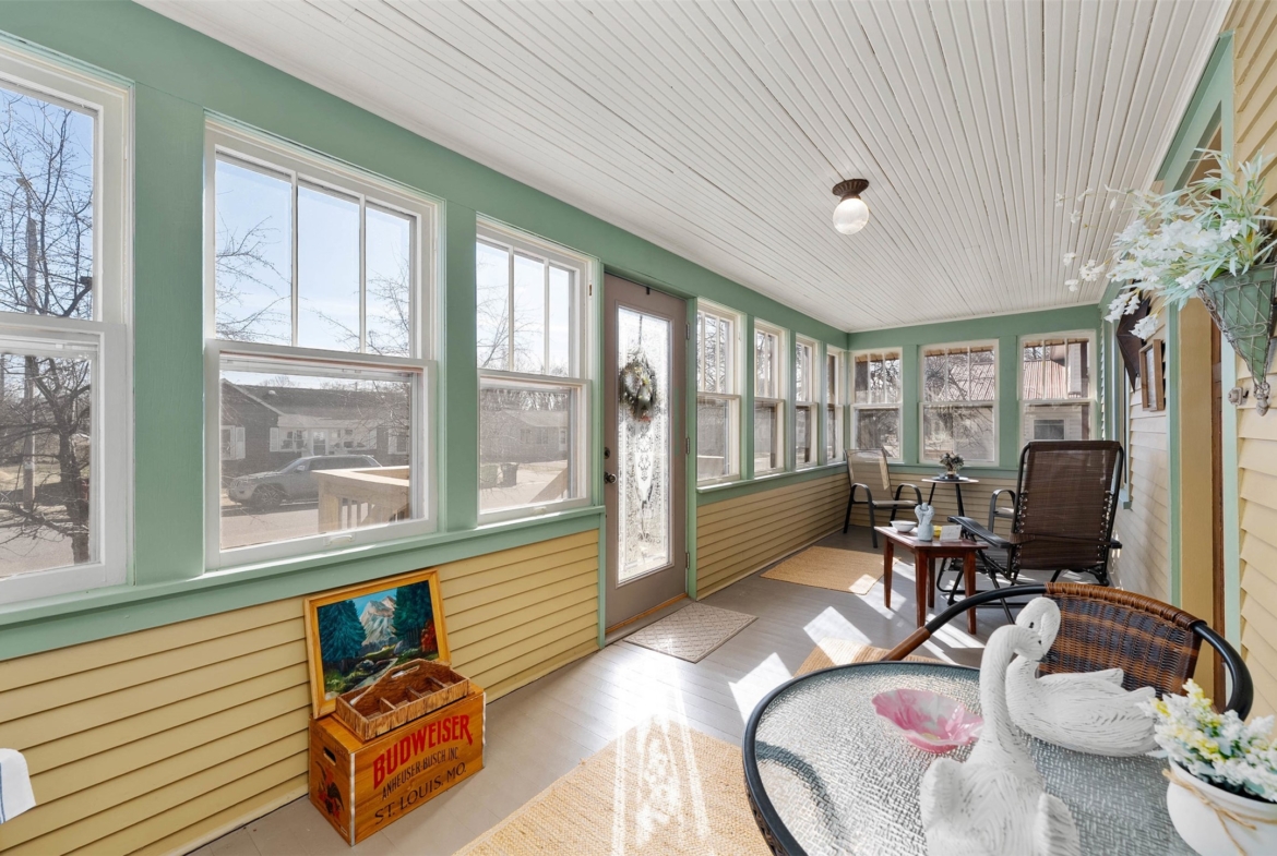 Move-in ready home features wood floors with original trim, a 3 season porch and open dining and living room.