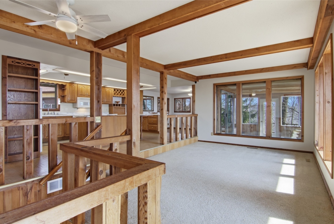 Ideal for those seeking a live work opportunity, the property includes a 50x30 pole building and a 60x30 four car garage with finished, temperature controlled upper level spaces (15x15 and 14x39) perfect for an office, gathering area, or additional storage.