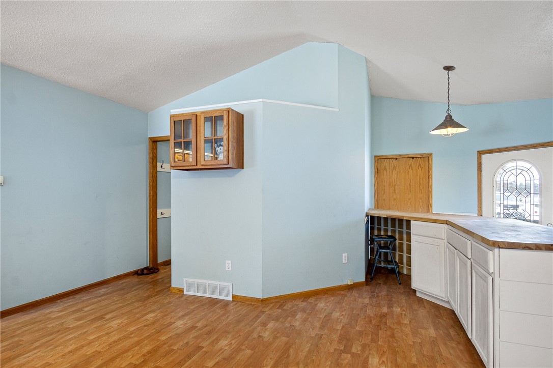 The home has a open floor concept, with tall ceilings with a huge kitchen with butcher block counters for family time and entertaining.