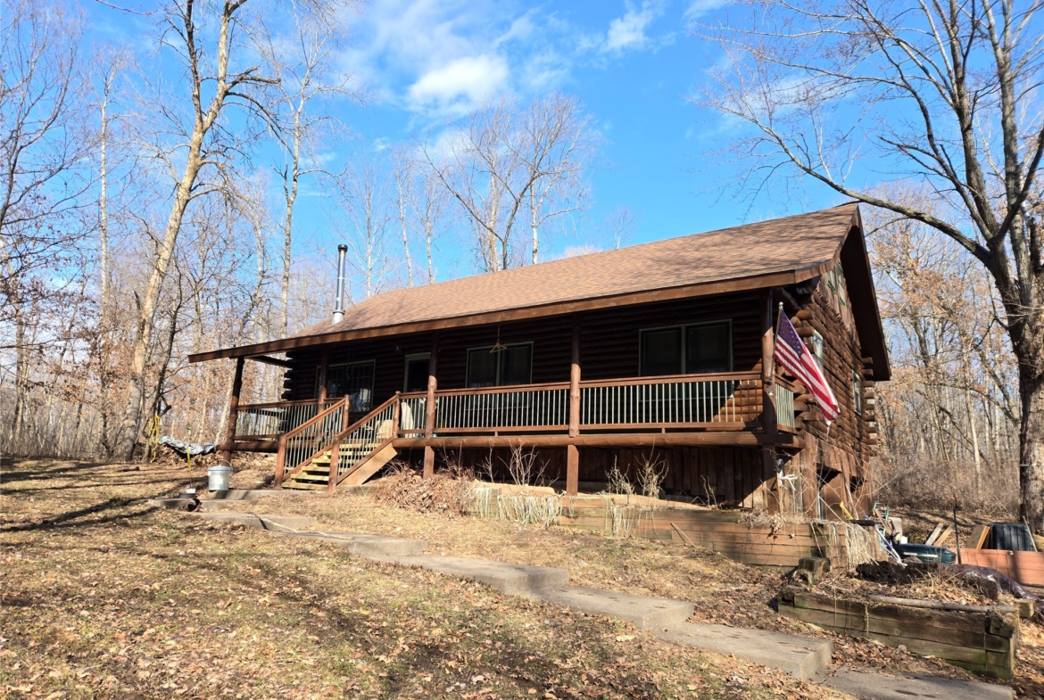 A real log cabin nestled in the hardwoods of Western Wisconsin, you have just under 10 acres of land where lots of wildlife surround you.