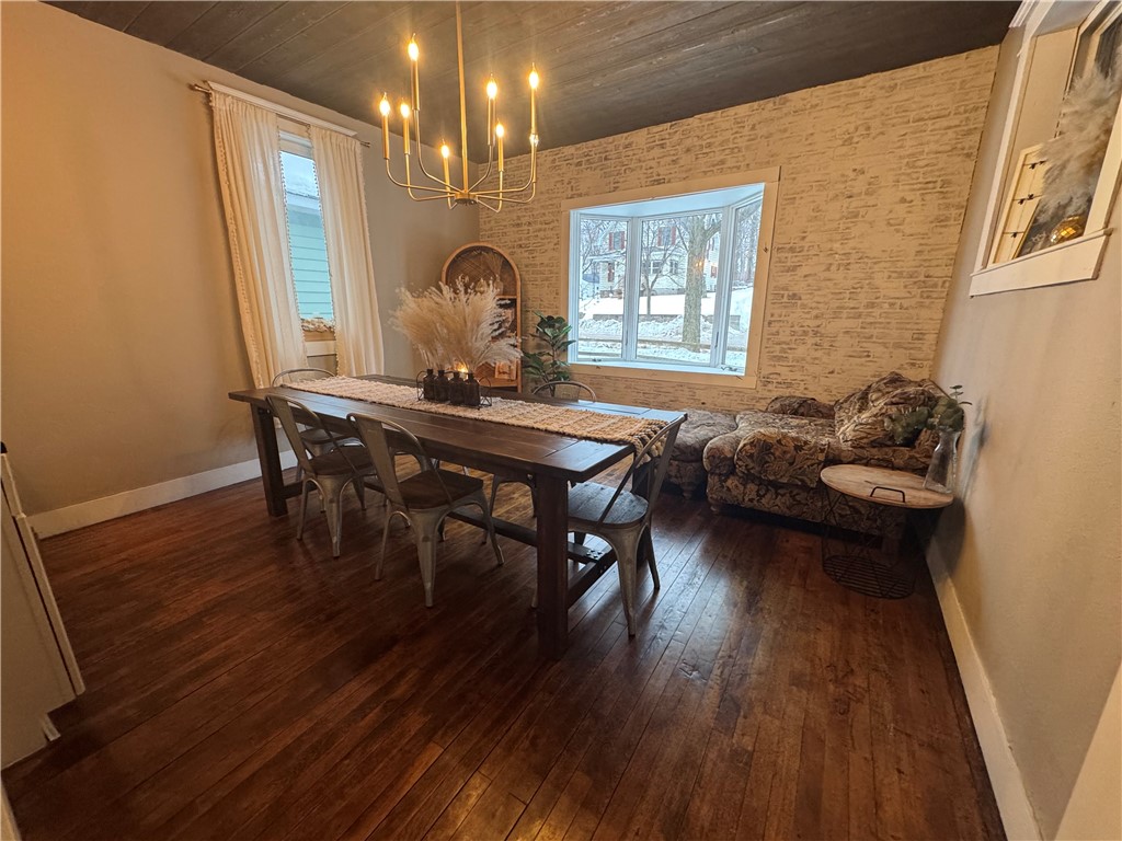 The beautiful kitchen features updated cabinetry and charming rustic details, flowing seamlessly into a stunning dining room with a bay window—ideal for both daily living and entertaining.