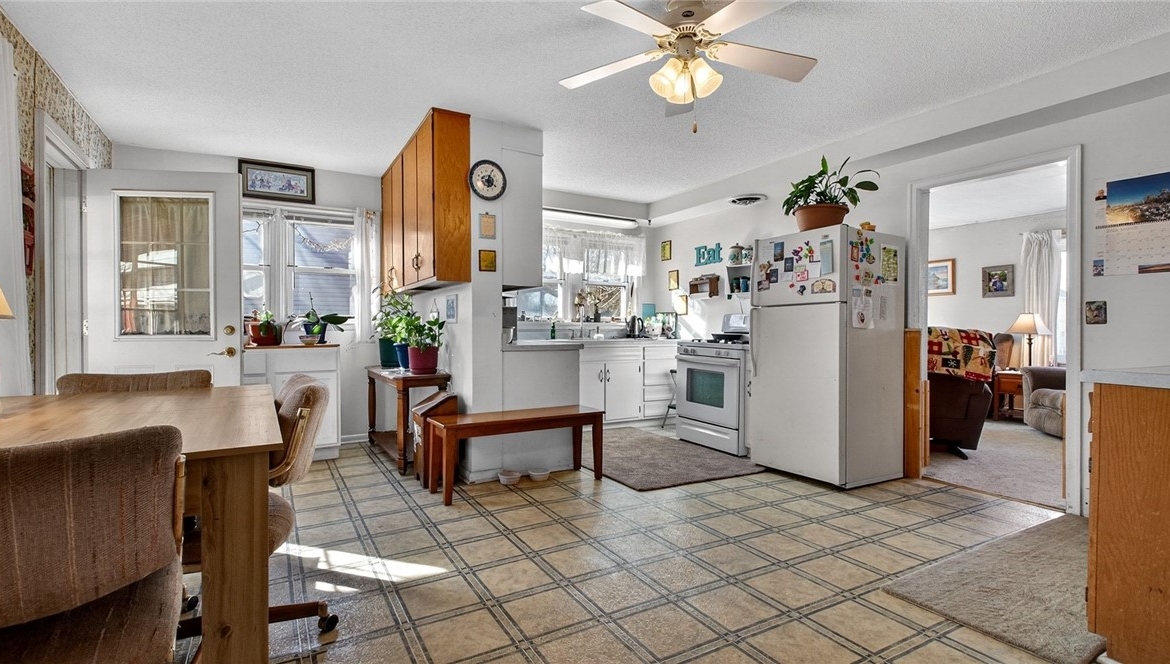 Recent updates by the current owners include re-insulation, a newer front porch, a new washer and dryer in 2022, and a new roof and siding completed in 2024/2025.