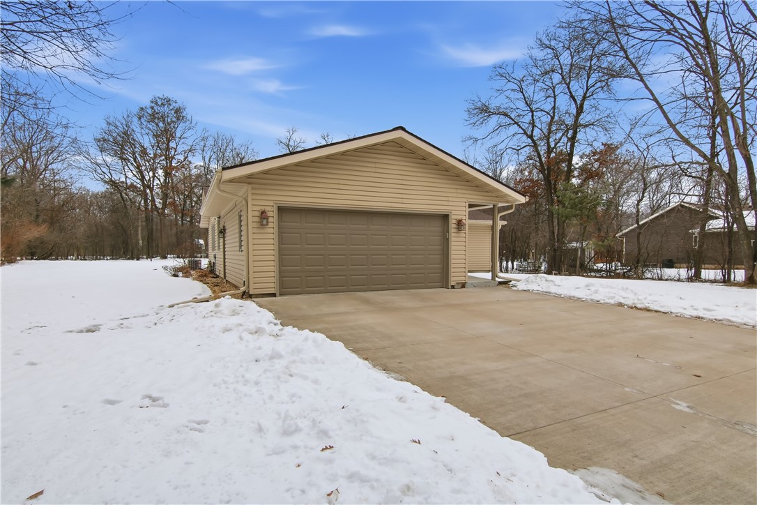 Located in Wissota Woods with Lake Wissota access, this well-maintained 3BR, 2BA home offers a private wooded setting and neighborhood amenities including docks, trails, playground, tennis, pickleball and basketball courts.