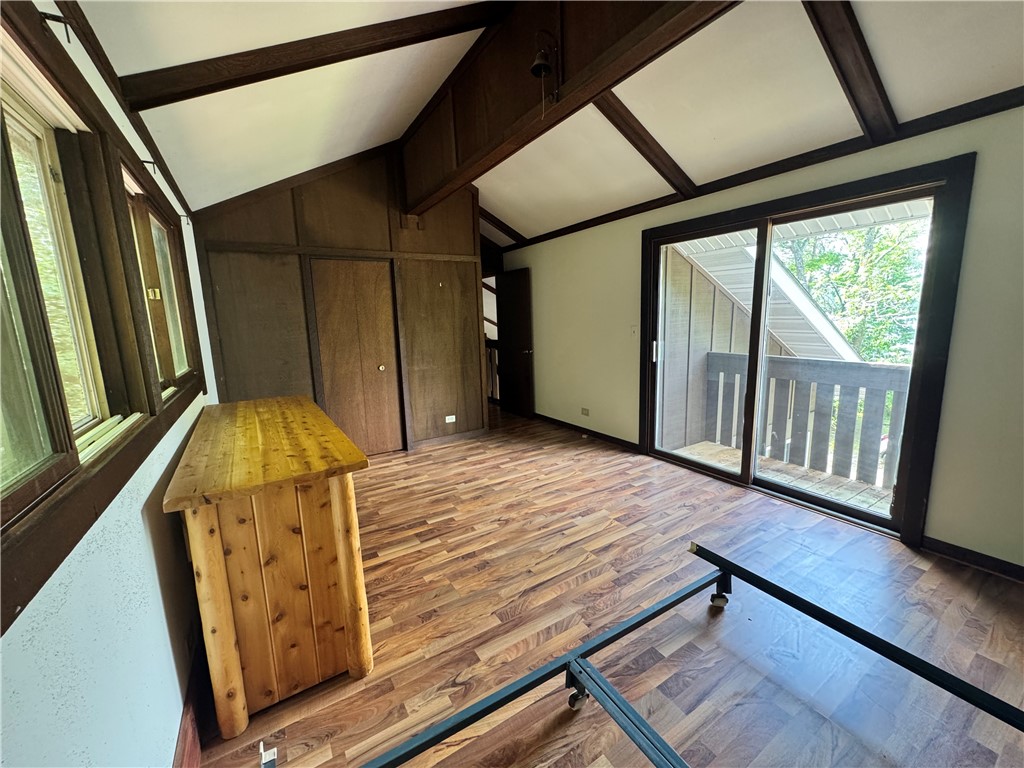 This 1 bedroom apartment area gives an up north feel with wood finishes and has a view of the lake from the third floor.