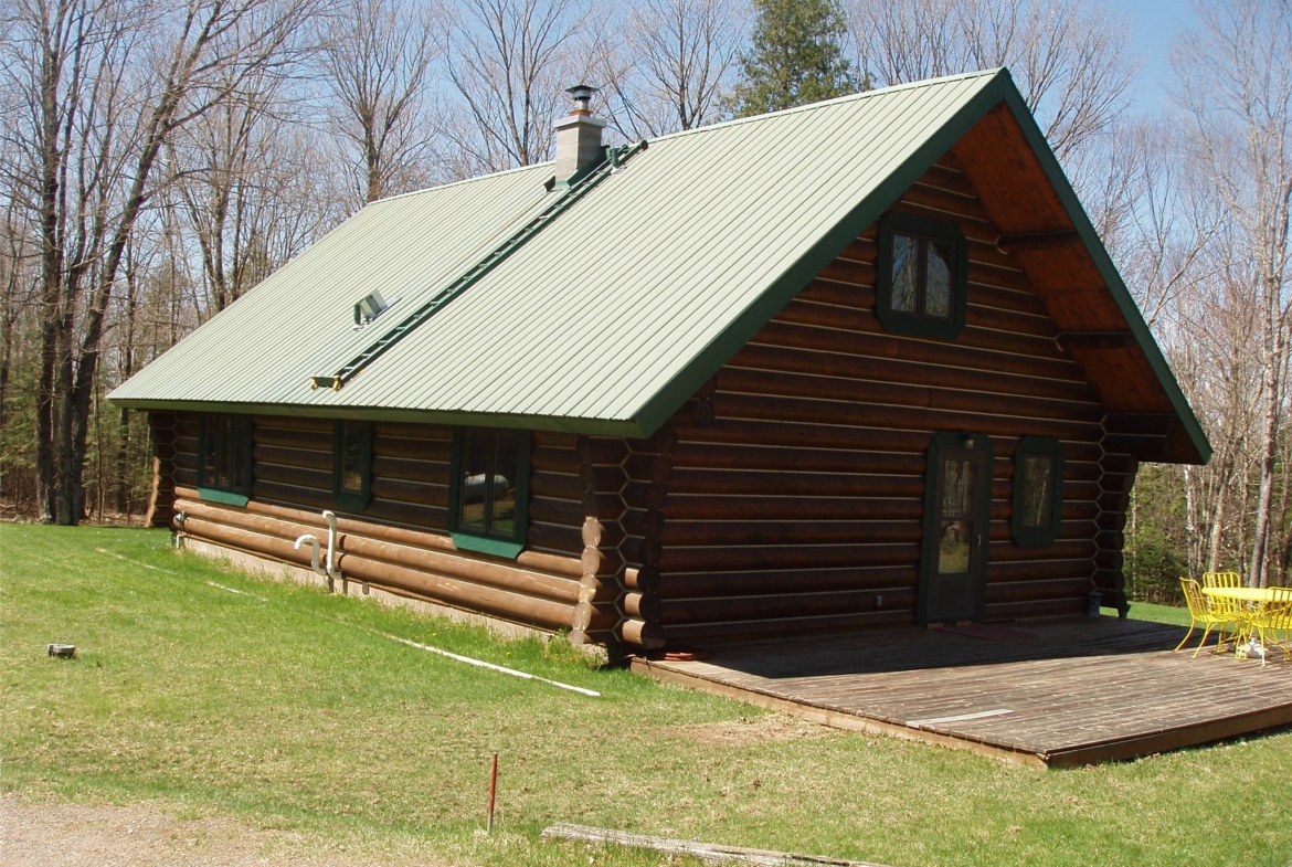 The main level of this full-log structure has a living room, kitchen/dining area, one bedroom and enclosed porch.
