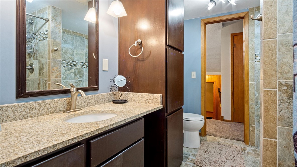 Sweet game room in lower level with pool table (included), bar and fireplace.