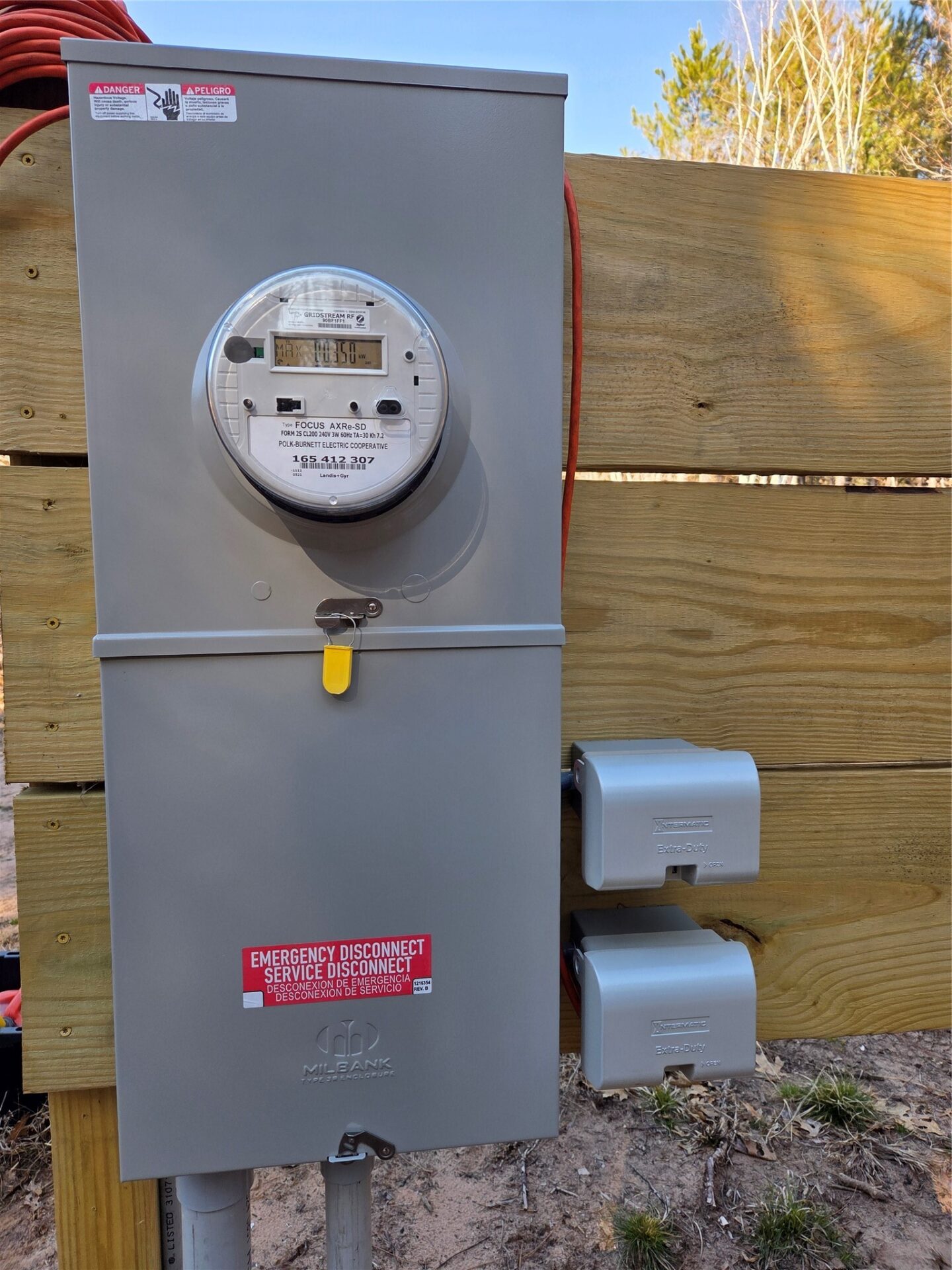Electric service panel is ready for your construction project with extra plug ins or use it to power your camper.
