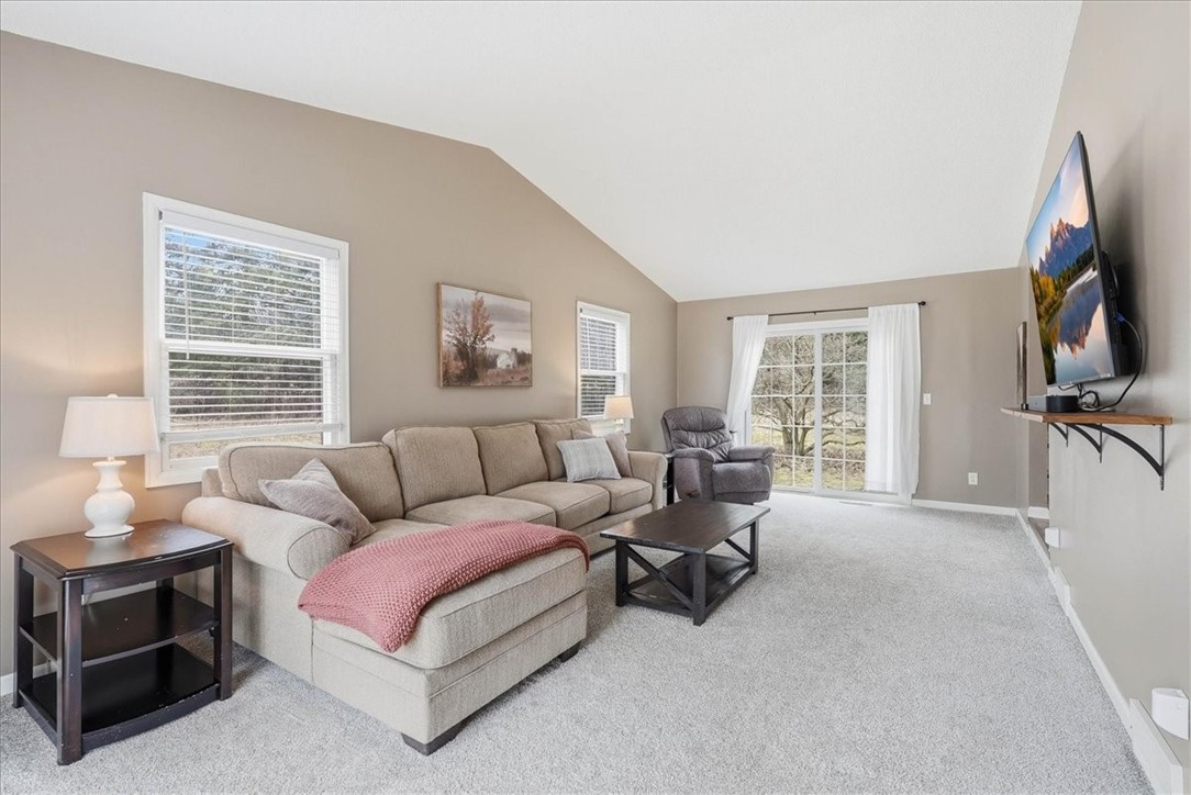 The thoughtful layout features four bedrooms all on the upper level, while the main floor invites connection with a bright vaulted living room, cozy family room with a stone fireplace, and convenient main-floor laundry.
