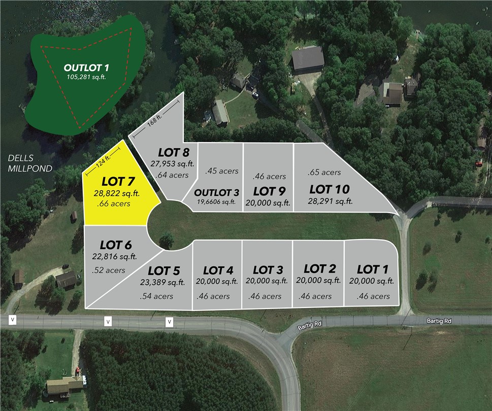 Set directly along the shoreline, Lot 7 delivers true waterfront living with unobstructed views and effortless access to Dells Millpond.