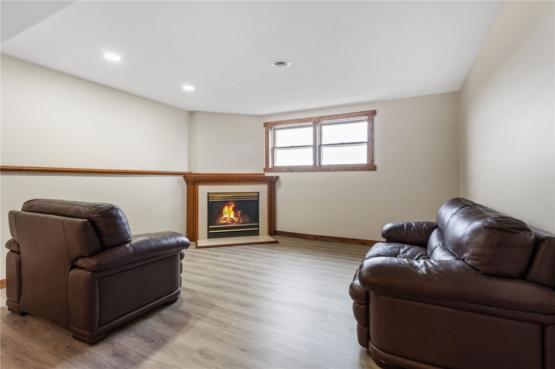 The lower level offers a cozy family room with gas fireplace and plenty of natural light.
