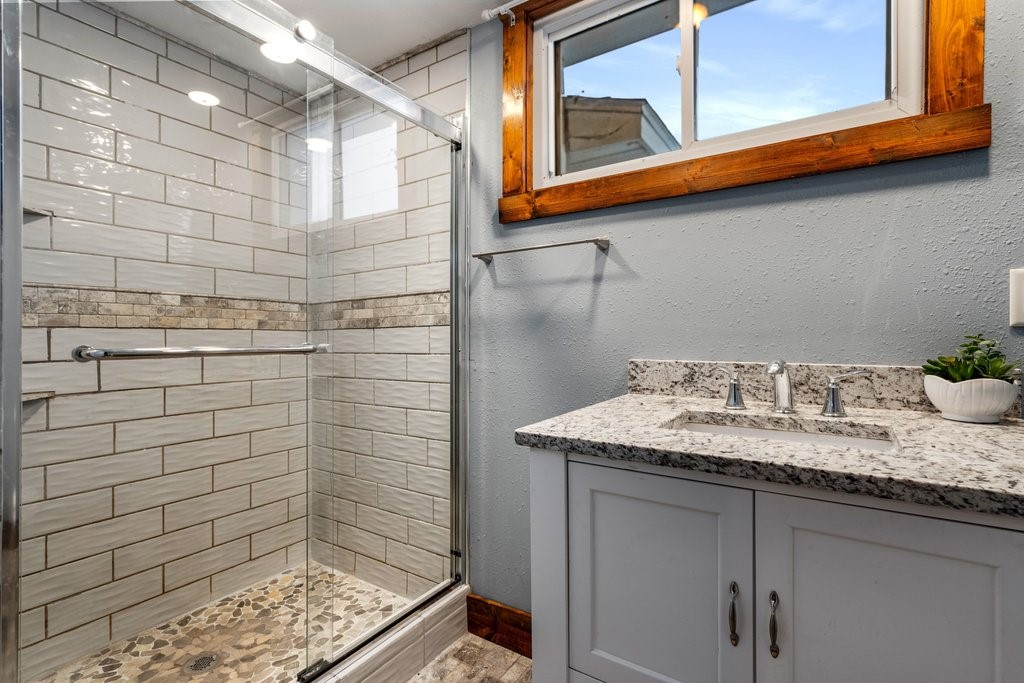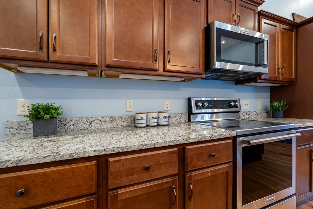 The home features gorgeous new countertops that elevate the kitchen and make entertaining effortless.