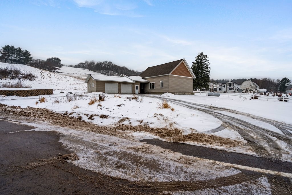 Directions: Starting in Ettrick WI go West on County Rd D, turn North on to County Rd T. The house is on the corner of County Rd T and County Rd D.