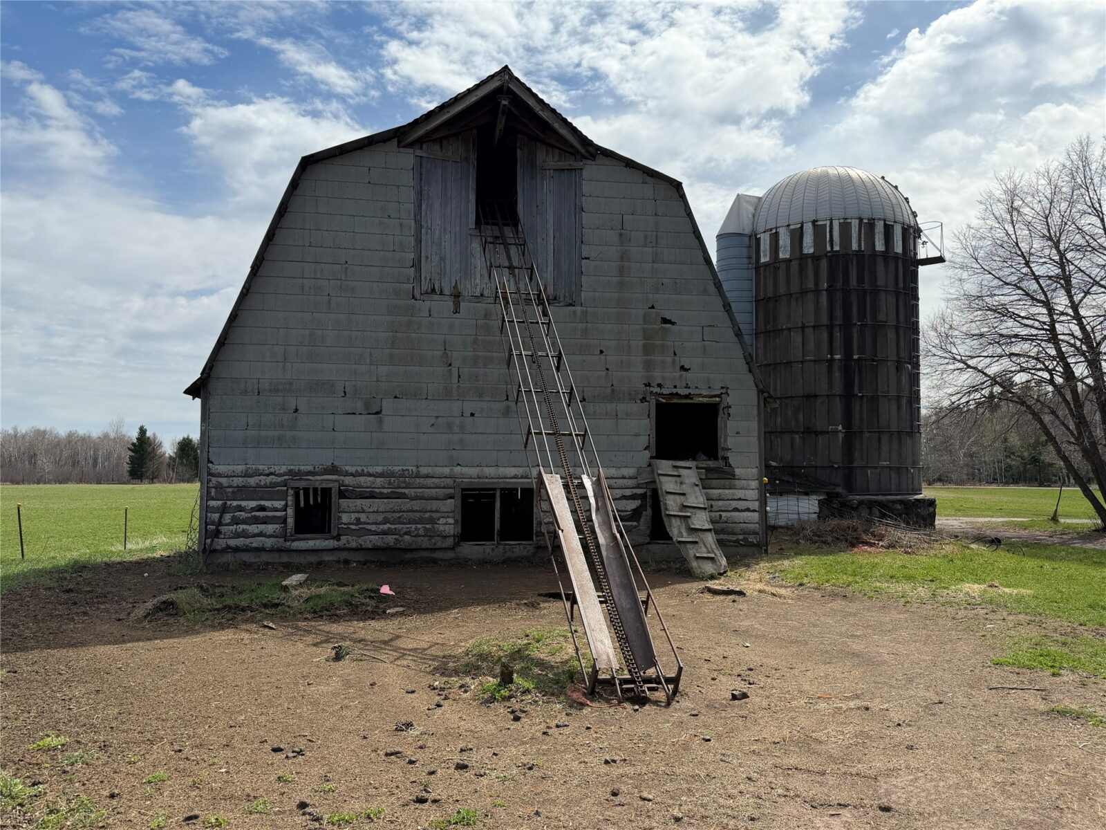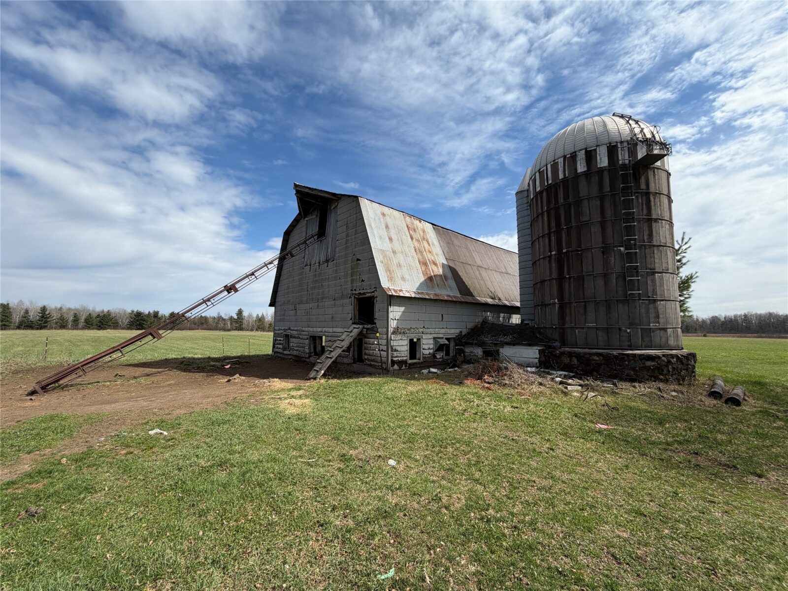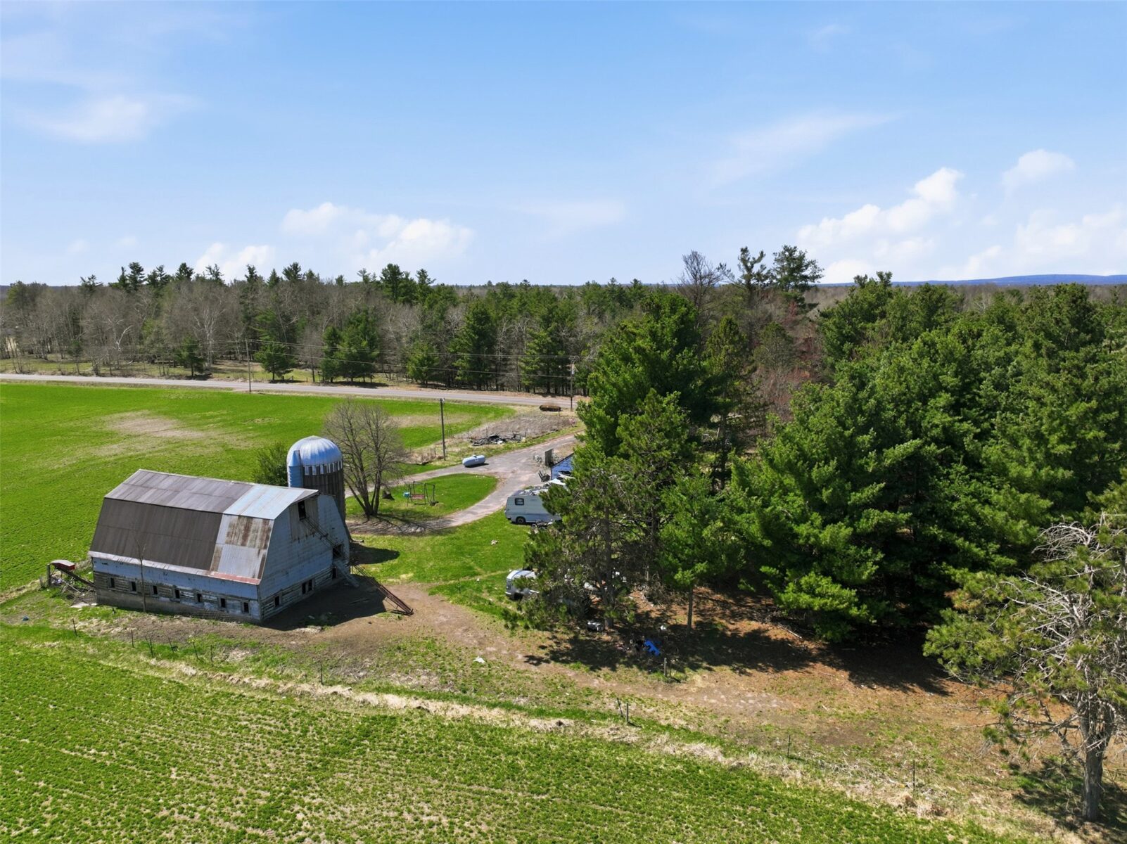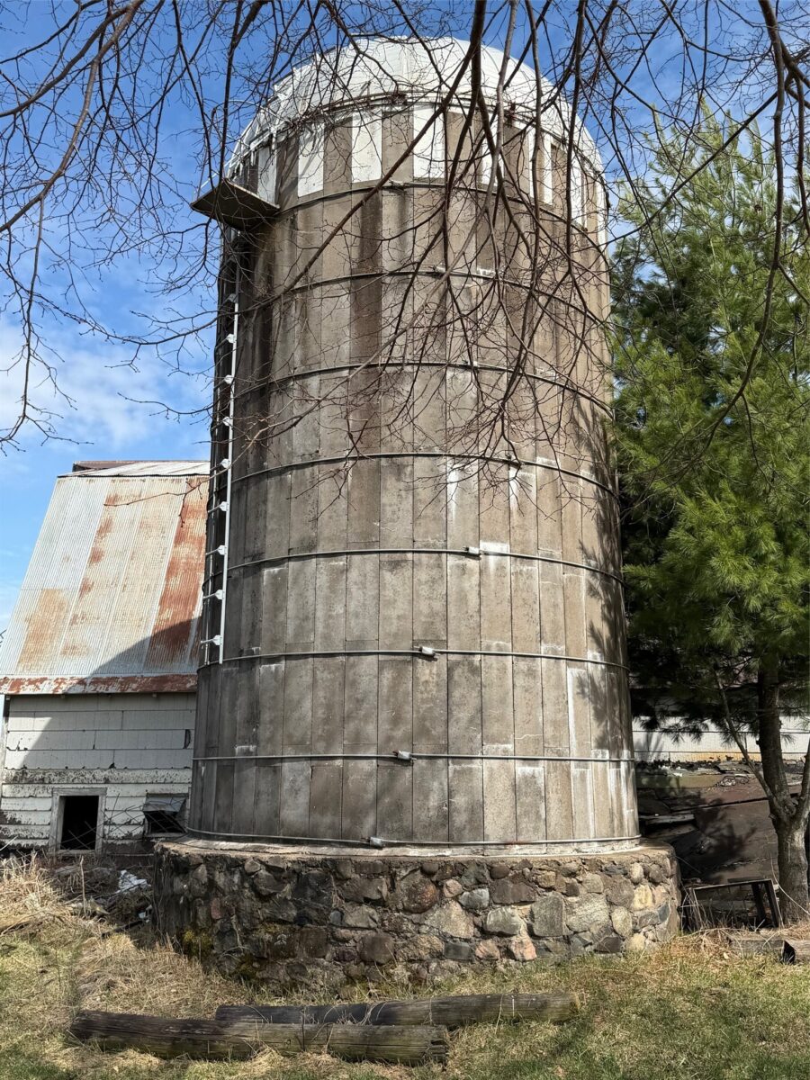 The current building site on the N/W corner of the property has a 27′ x 45′ milking barn w/hayloft and milkhouse, a 13′ x 40′ cement silo and 18′ x 25′ wood garage.