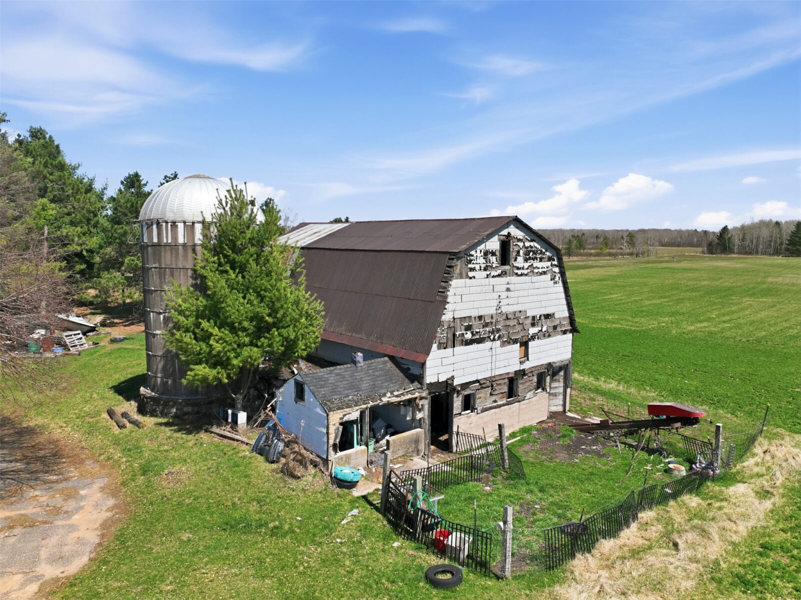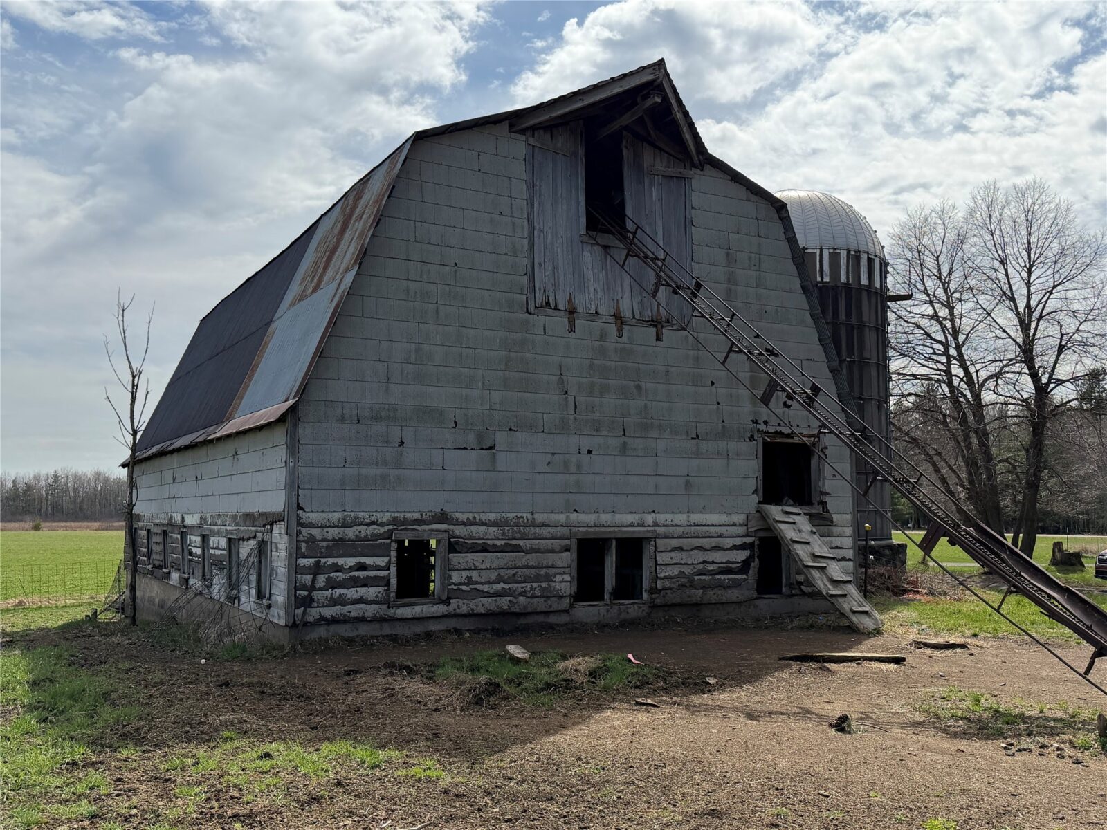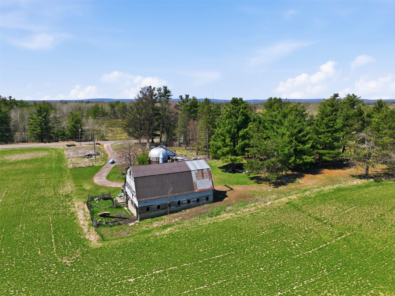 The current building site on the N/W corner of the property has a 27′ x 45′ milking barn w/hayloft and milkhouse, a 13′ x 40′ cement silo and 18′ x 25′ wood garage.