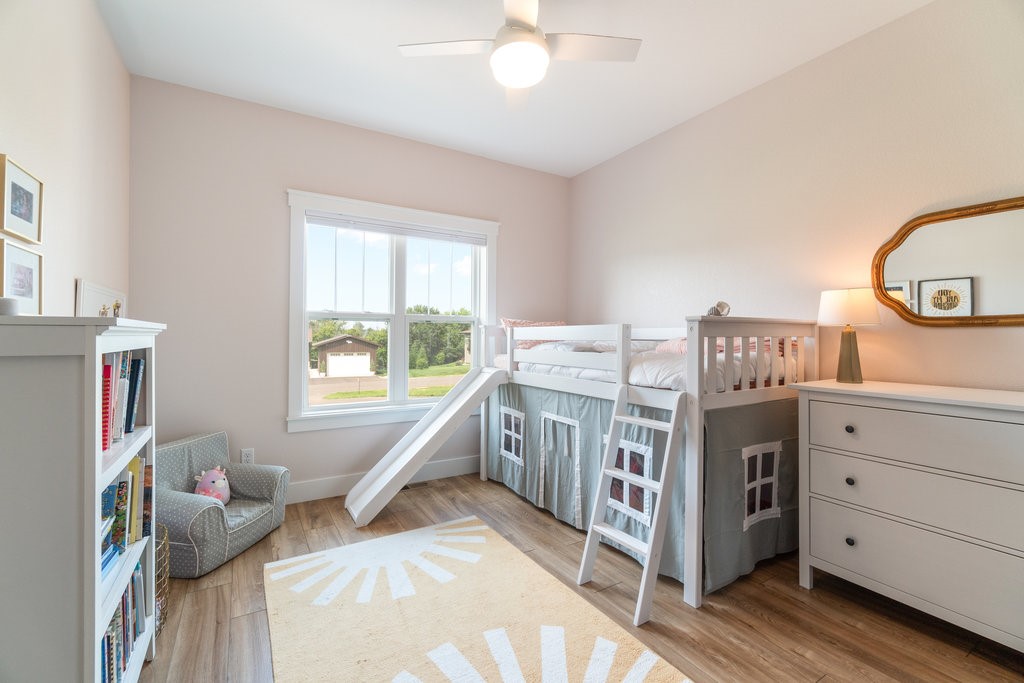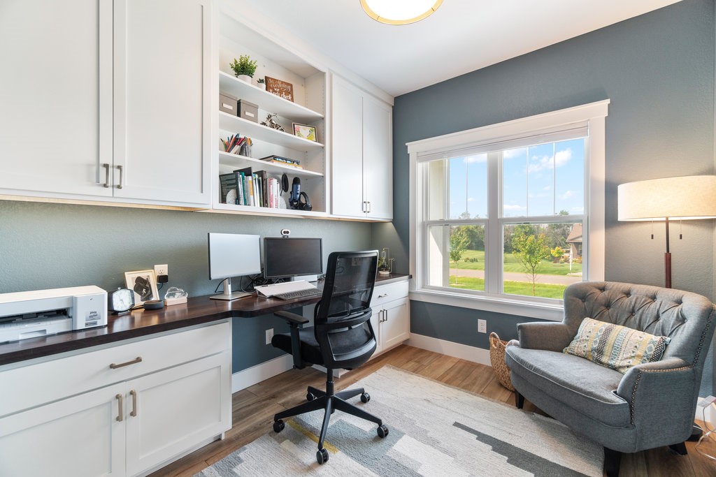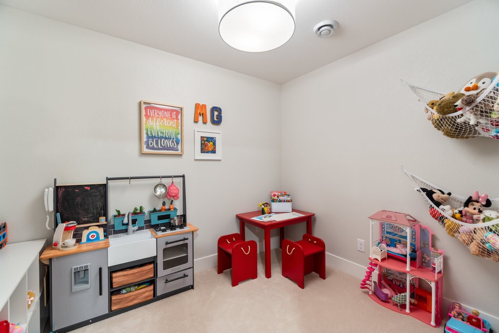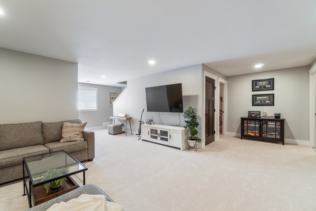 Downstairs, provides a large family room, an additional bedroom, full bath, flex space perfect for an office or playroom, large storage area—easily convertible into extra living space.