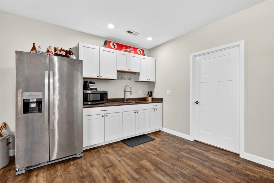 This level also includes an additional refrigerator, kitchenette, and bar area—ideal for hosting guests.